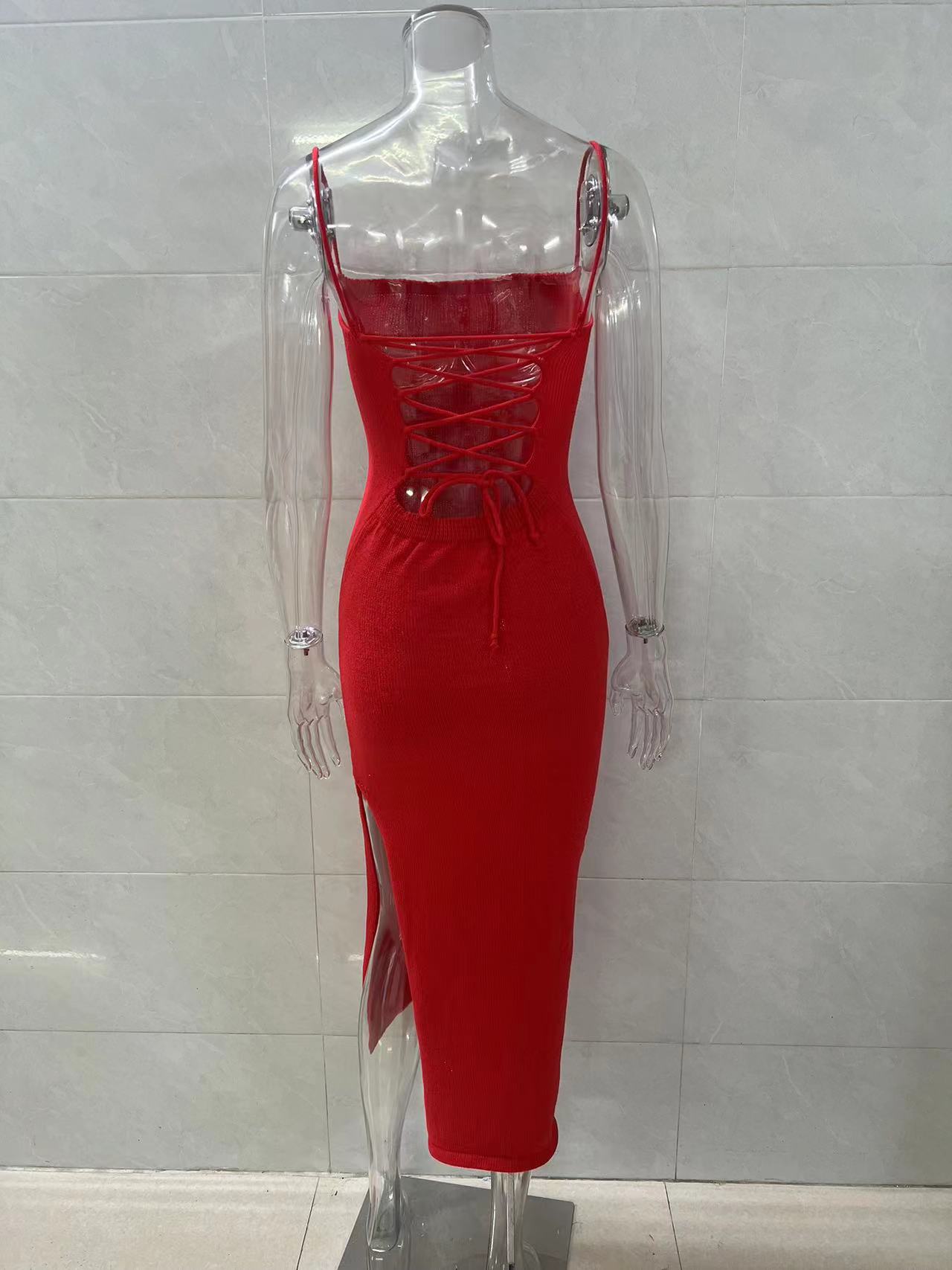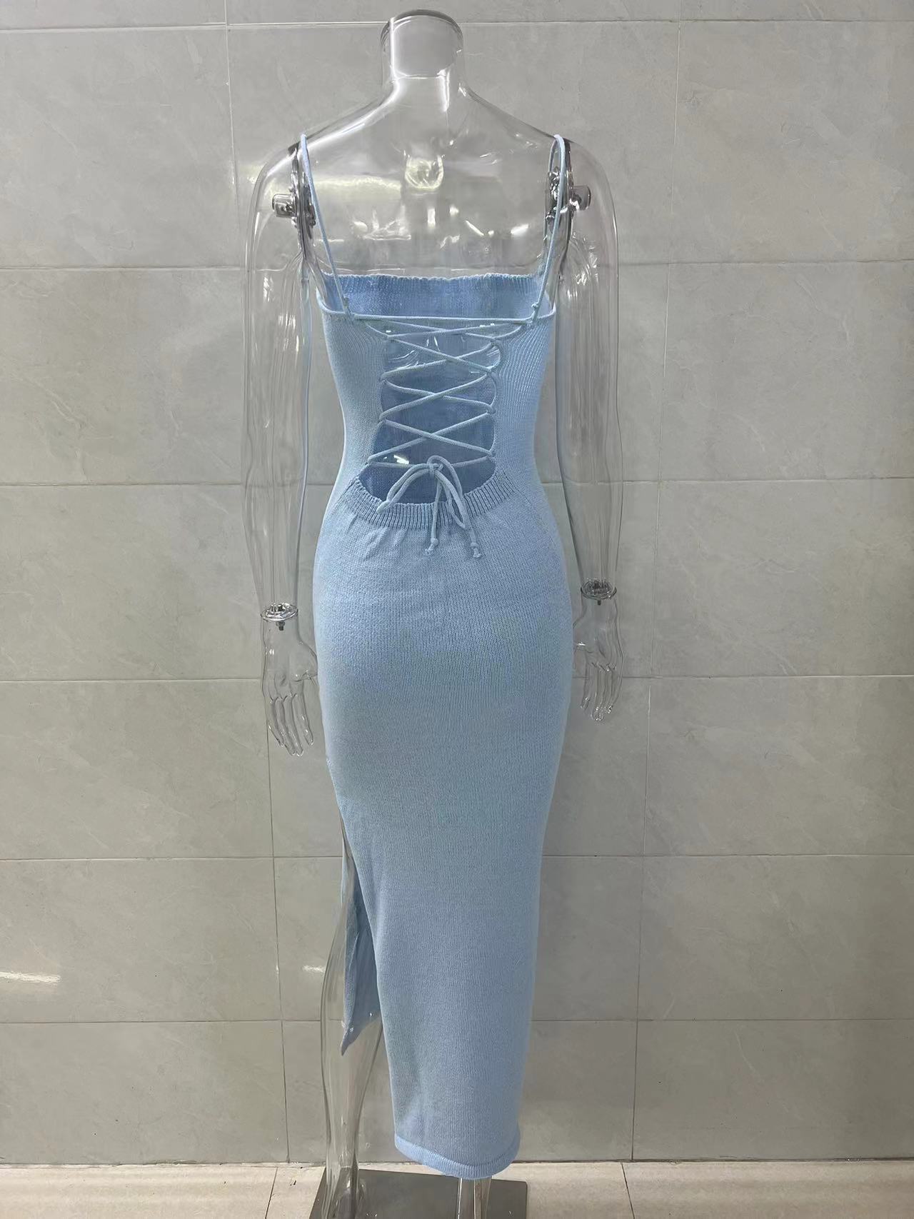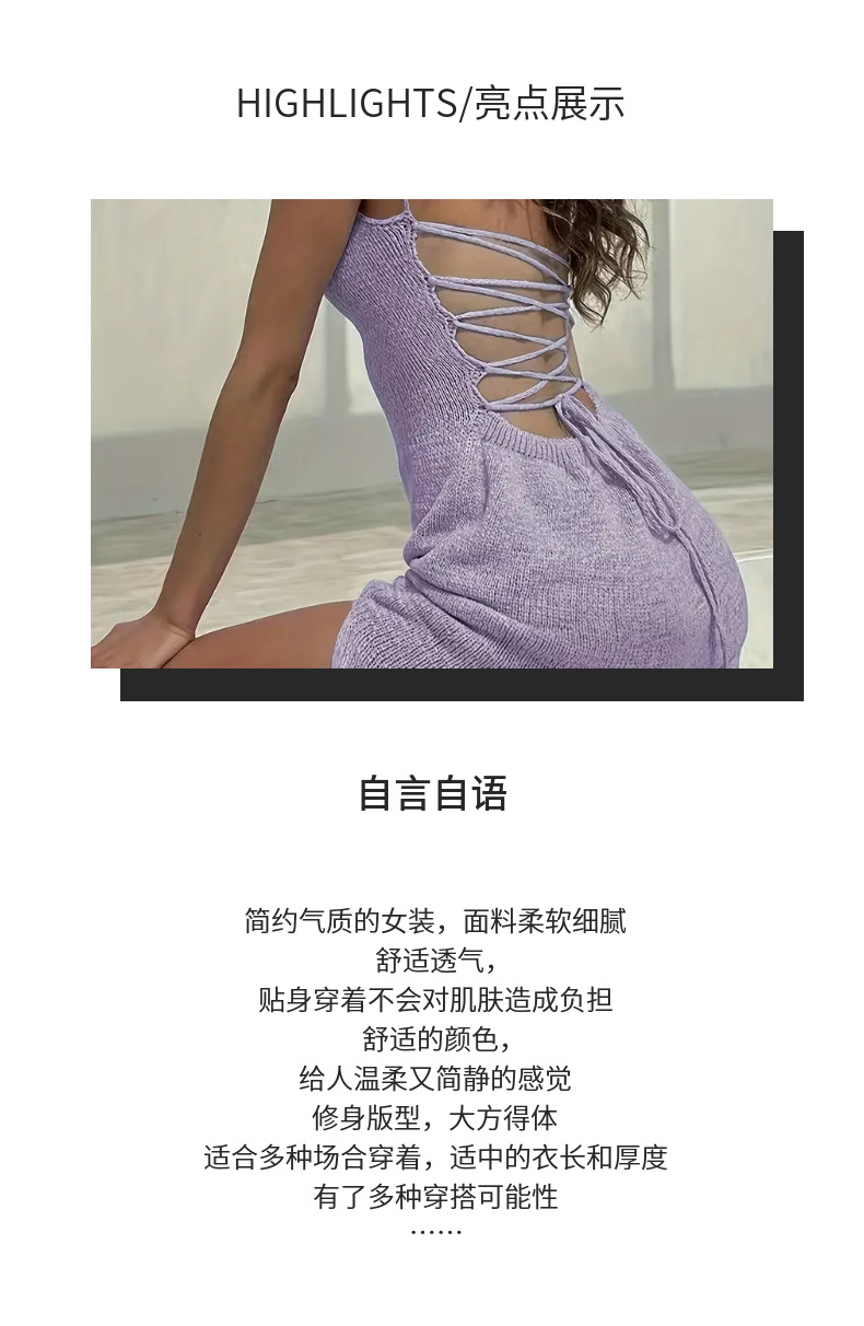 유럽과 미국의 국경 간 대외 무역 여성의 여름 백리스 비치 원피스 여성의 섹시한 스파이스 니트 슬링 원피스스토어 가기