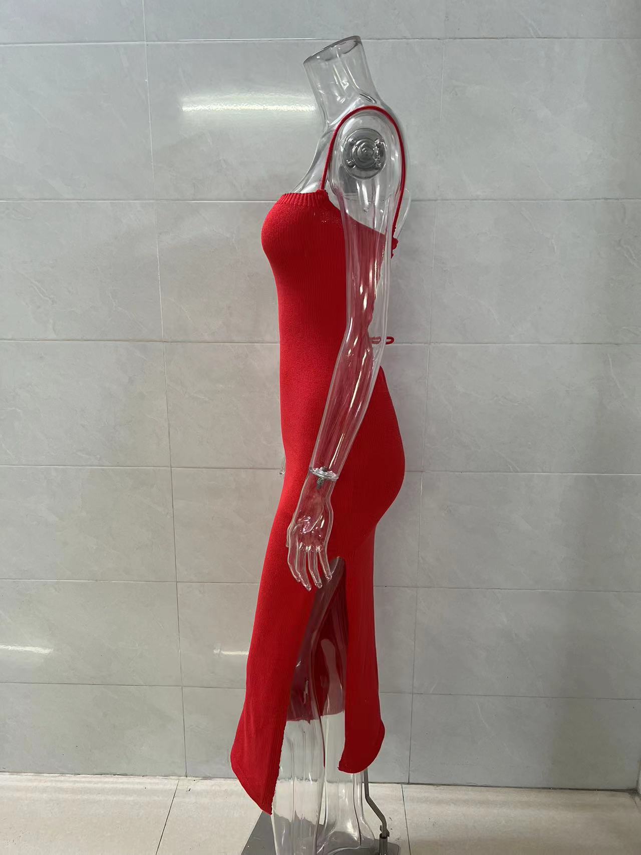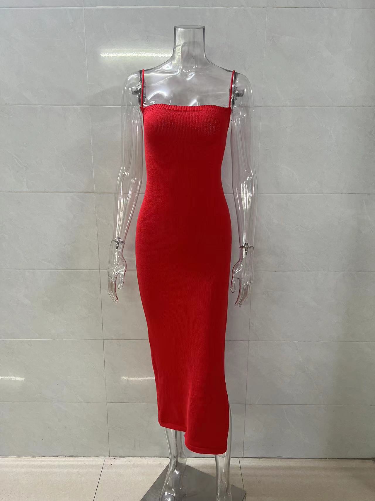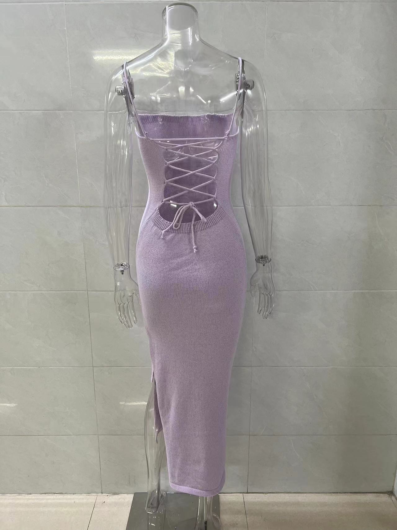 유럽과 미국의 국경 간 대외 무역 여성의 여름 백리스 비치 원피스 여성의 섹시한 스파이스 니트 슬링 원피스스토어 가기