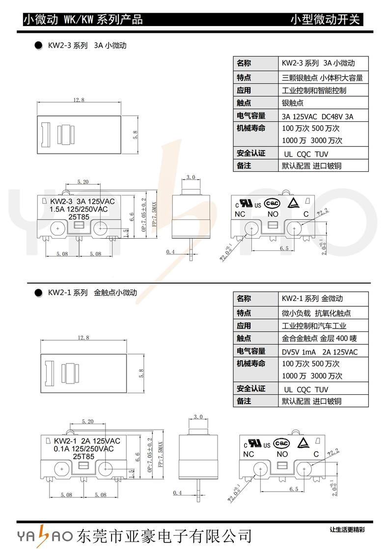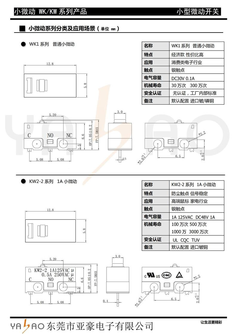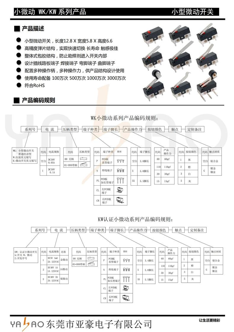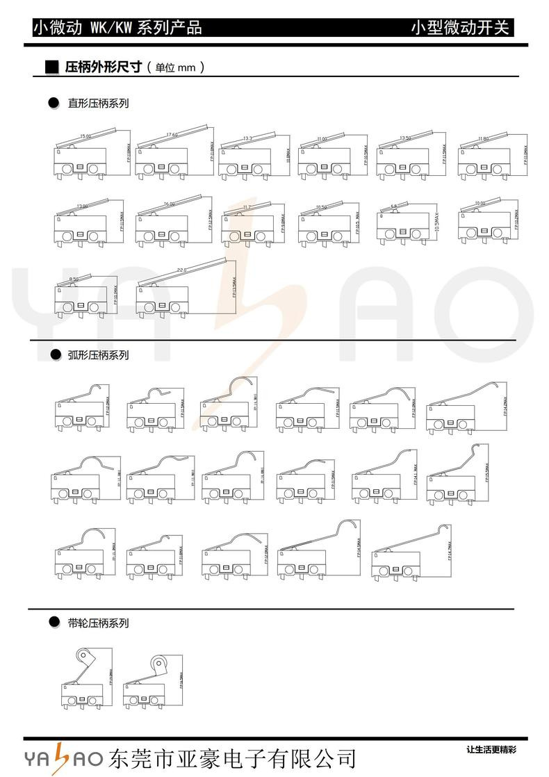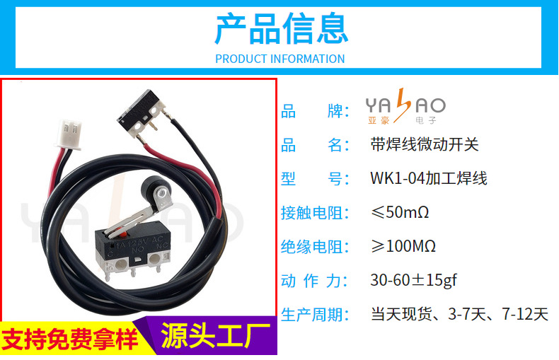 带焊线微动开关(压板/线长/端子)款式繁多,