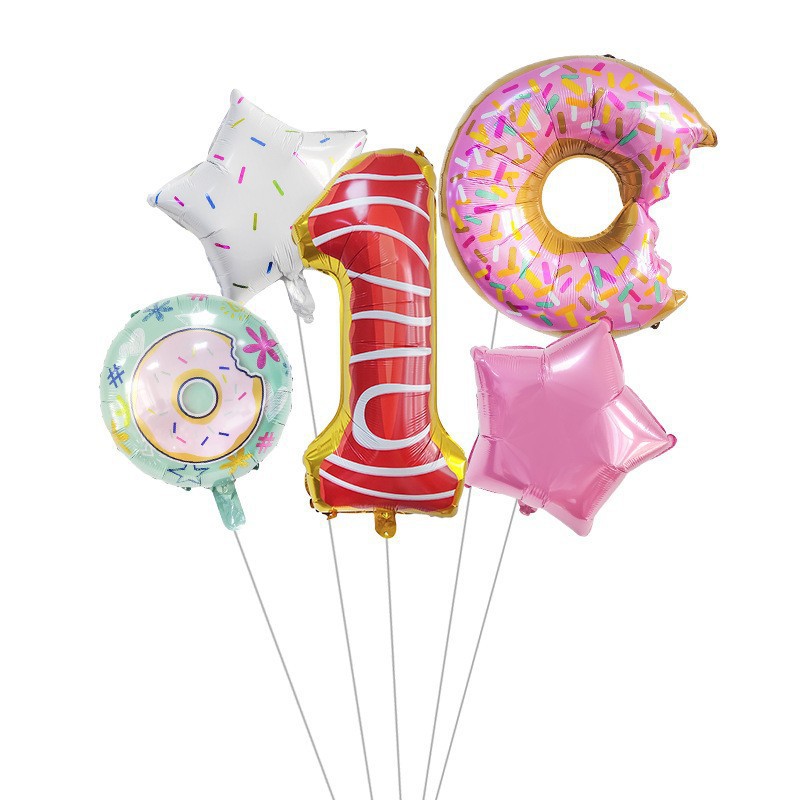 아마존 도넛 32 인치 디지털 호일 풍선 아기 생일 사탕 도넛 풍선 생일 파티