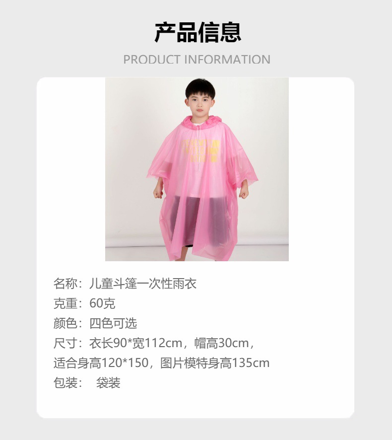 어린이 페바 일회용 비옷 야외 하이킹 경량 케이프 판초 얇은 배낭 서리 비옷