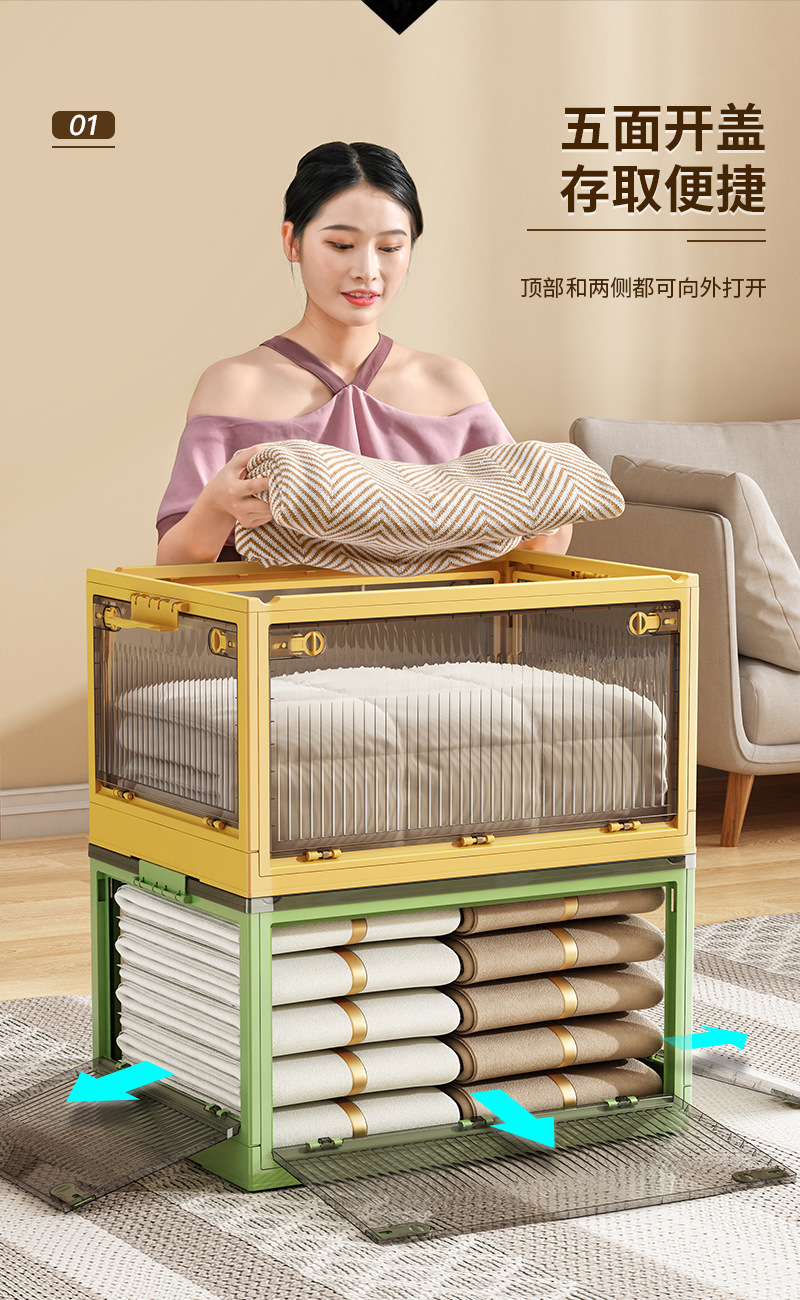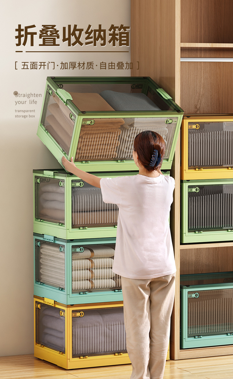 옷 보관함 옷장 옷 이불 보관 가정용 접이식 플라스틱 상자 투명 5 개 개방 보관 마감 상자스토어 가기