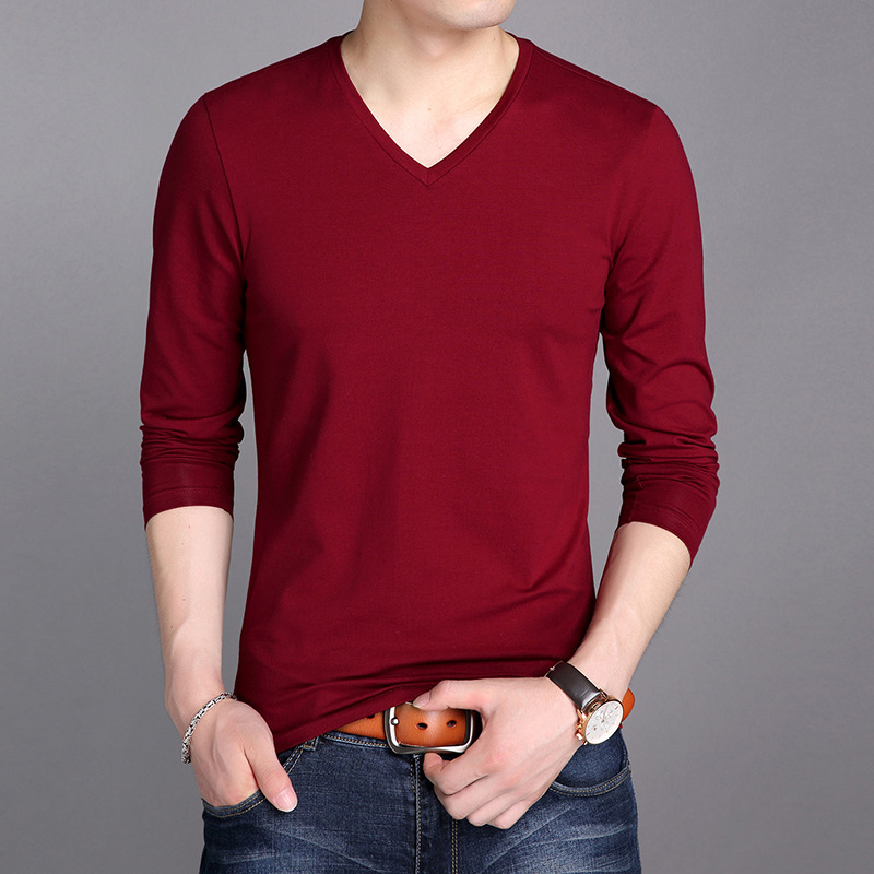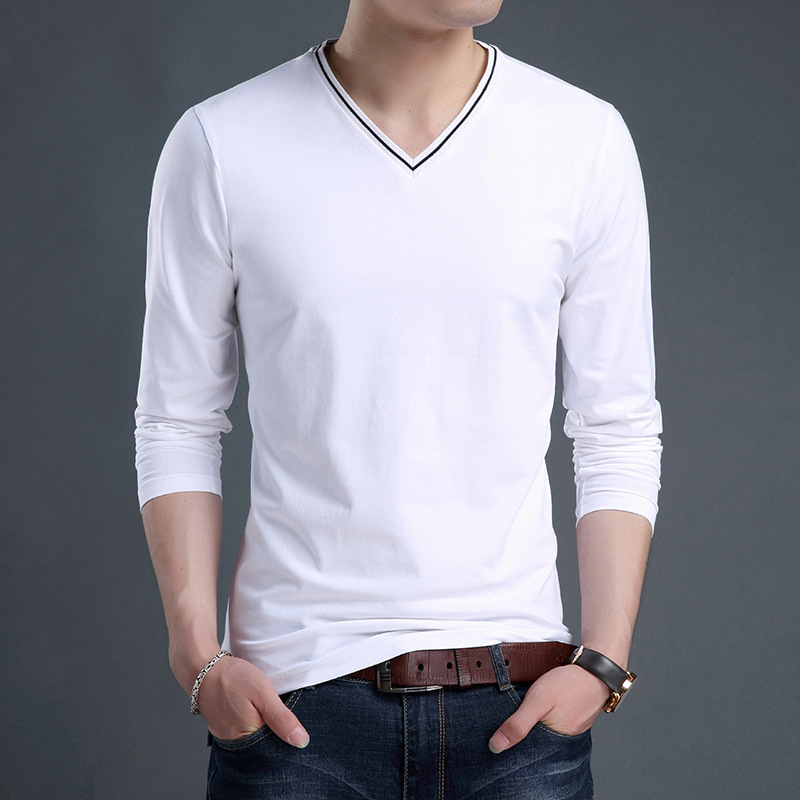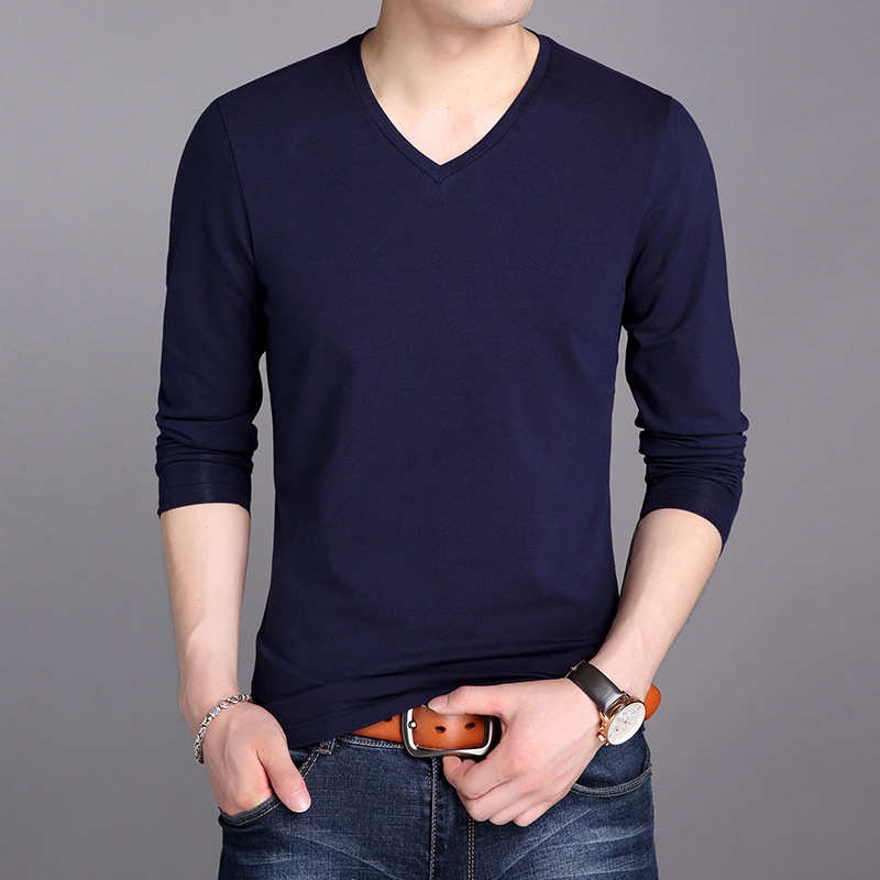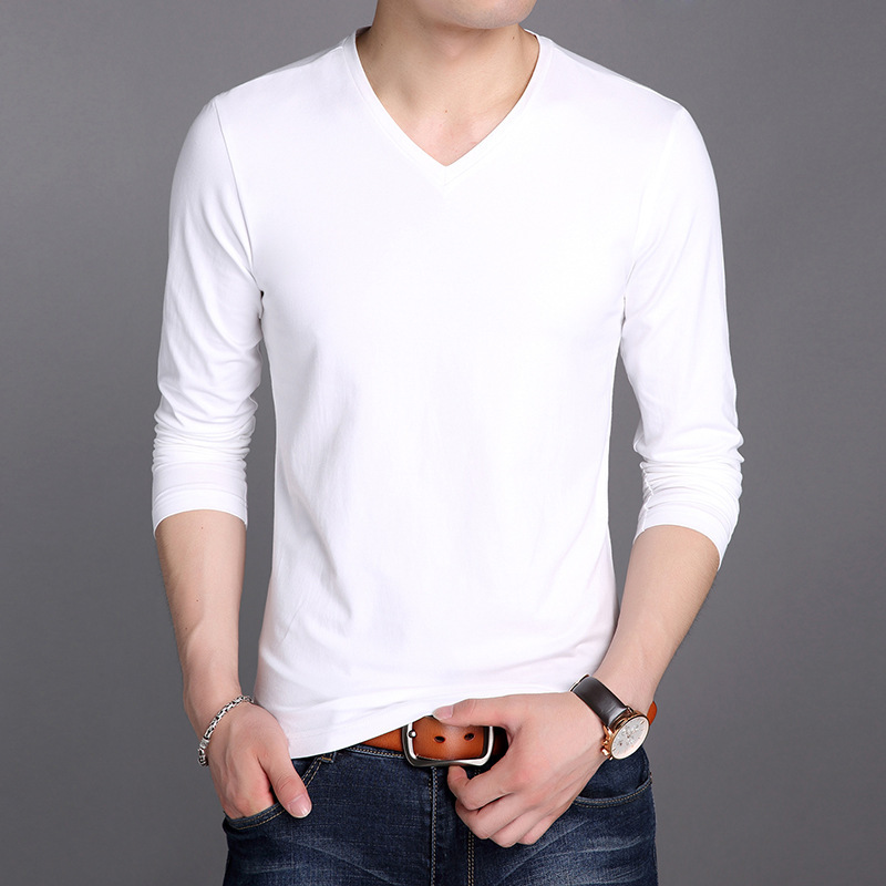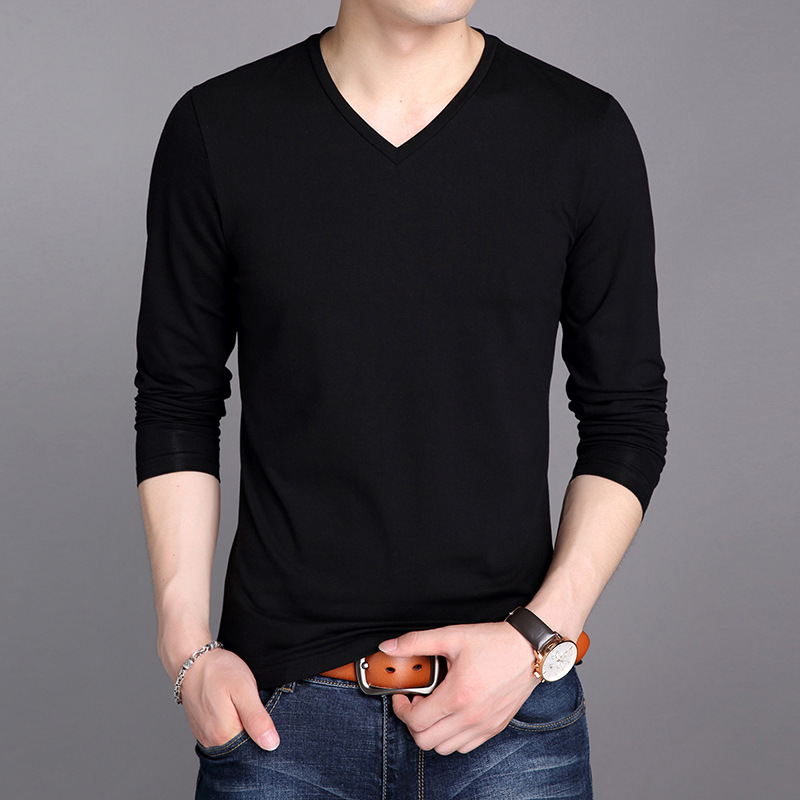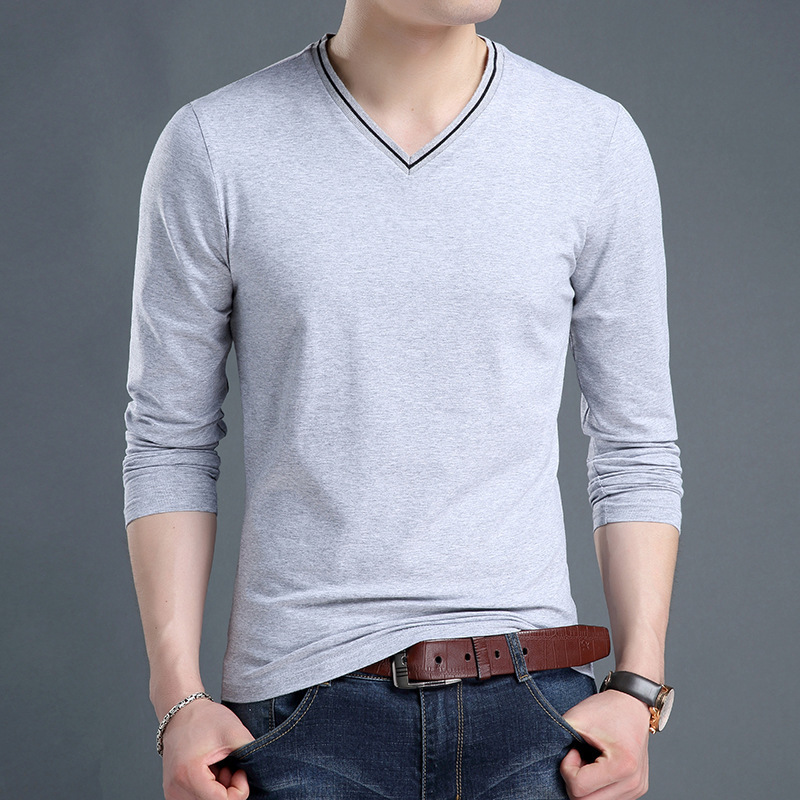 봄과 가을 신면 긴팔 티셔츠 남성 V-넥 청소년 슬림핏 얇은 남성 탑 베이스 셔츠 도매스토어 가기
