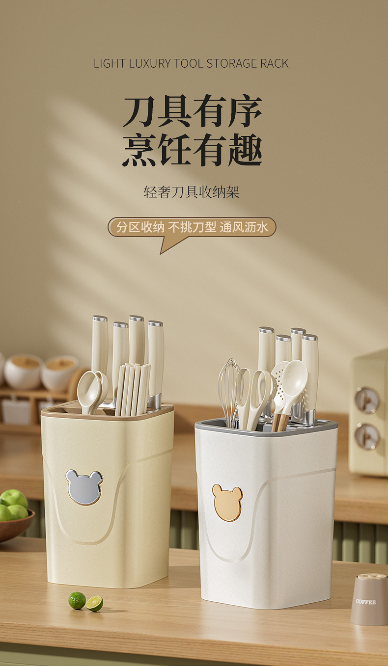 주방 조명 고급 나이프 랙 보관 랙 조리대 다기능 젓가락 홀더 나이프 홀더 통합 보관 상자 가정용 주방 나이프 랙스토어 가기