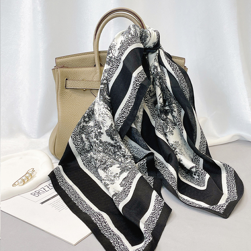2023 새로운 가을과 겨울 항저우 90 대형 사각 고급 잉크 펜 그리기 모조 울 벨벳 스카프 숄스토어 가기