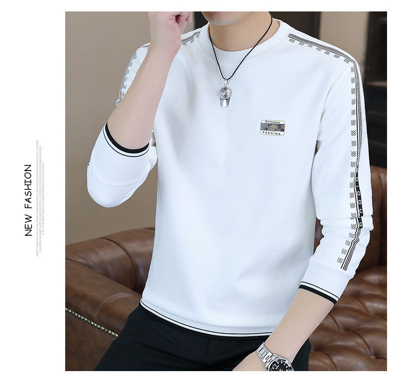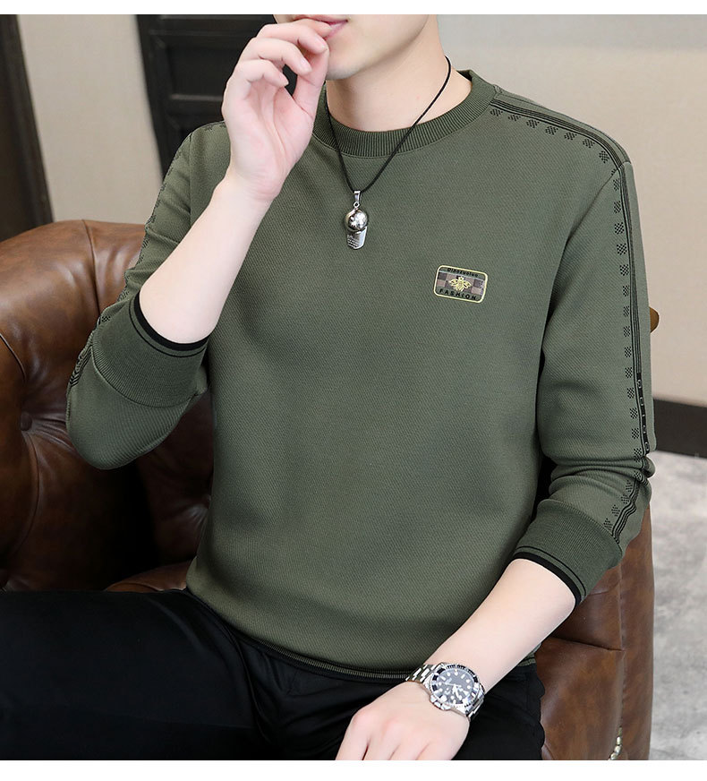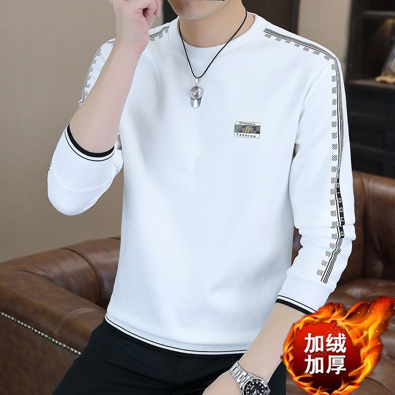 유럽 스타일 2025 가을 겨울 신상 남성 라운드넥 기모 스웨트셔츠 트렌디 패션 풀오버 이너웨어 보온 상의스토어 가기