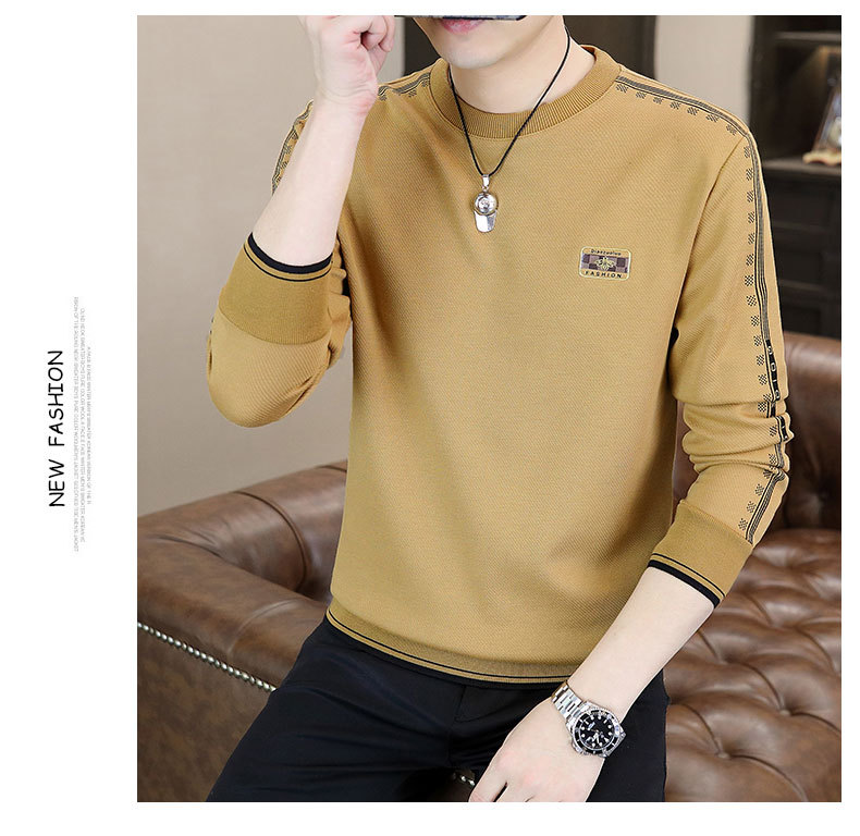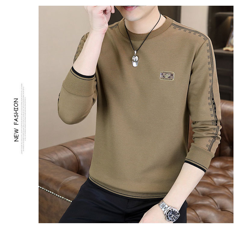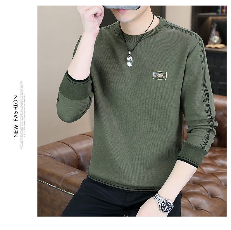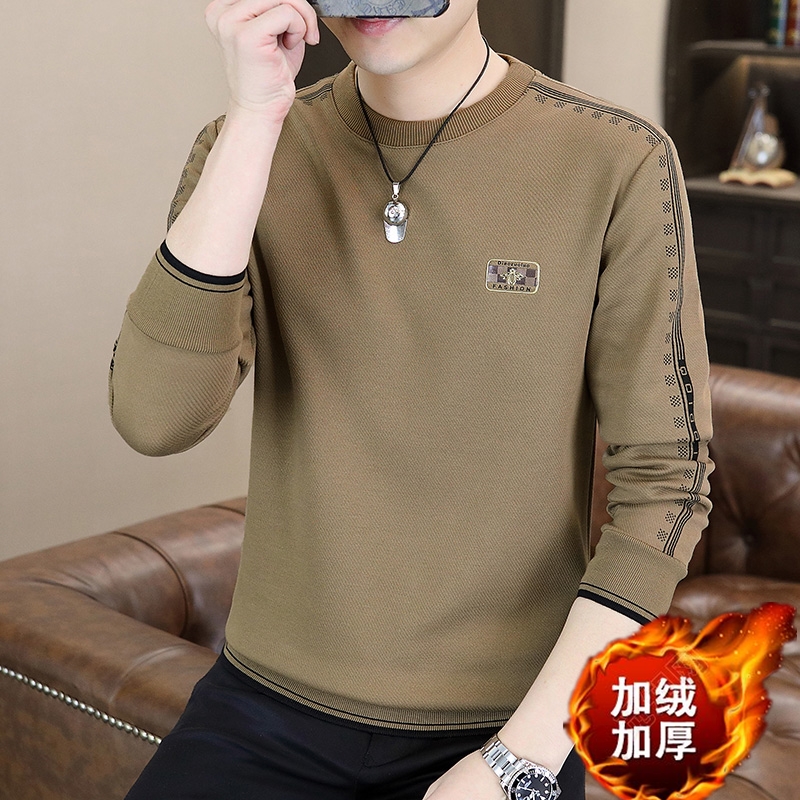 유럽 스타일 2025 가을 겨울 신상 남성 라운드넥 기모 스웨트셔츠 트렌디 패션 풀오버 이너웨어 보온 상의