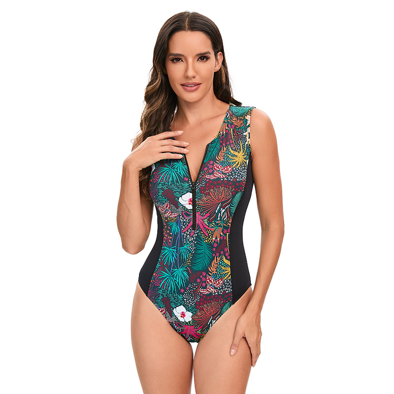 유럽과 미국의 국경 간 섹시한 민소매 조끼 수영복 결합 된 서핑 프린트 수영복 여성의 대외 무역 스포츠 다이빙 세트스토어 가기