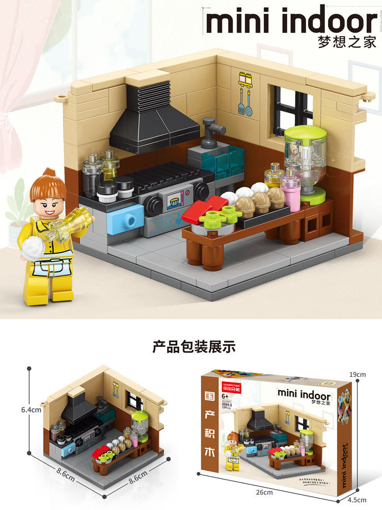 르레 브라더스 스트리트 뷰 시리즈 퍼즐 창조적 인 모델 빌딩 블록 어린이 조립 작은 입자 장난감 선물 소년과 소녀스토어 가기