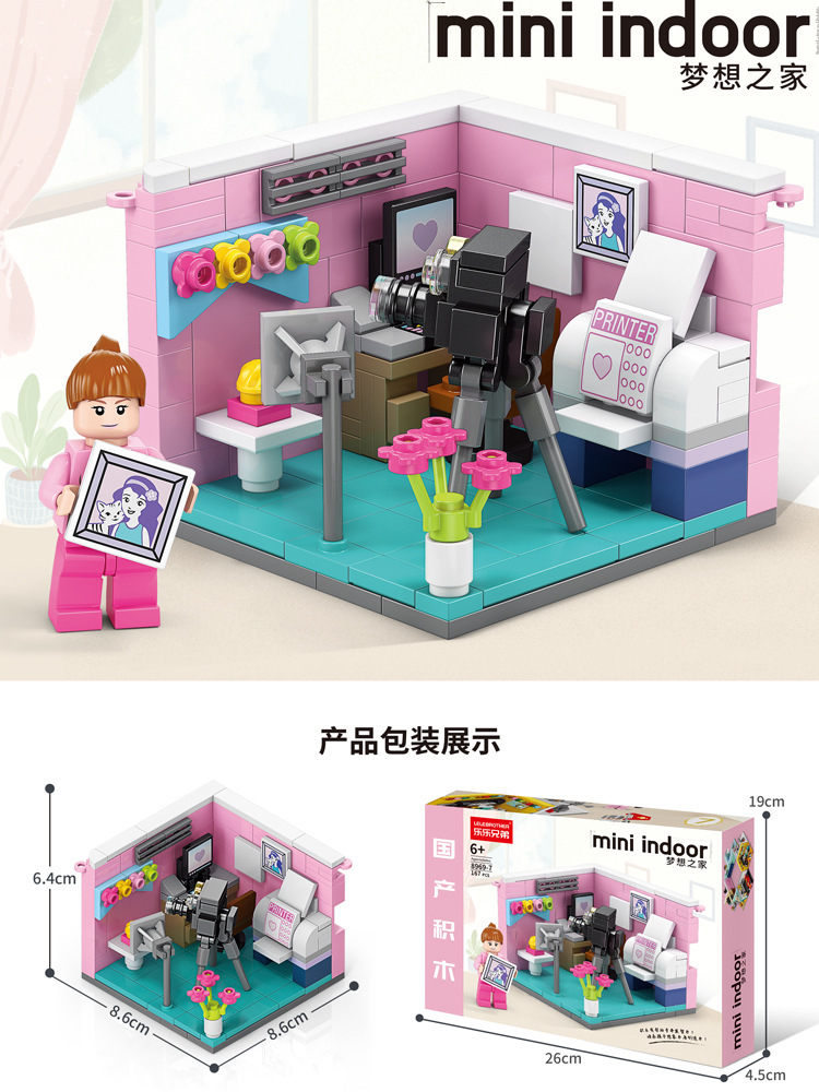 르레 브라더스 스트리트 뷰 시리즈 퍼즐 창조적 인 모델 빌딩 블록 어린이 조립 작은 입자 장난감 선물 소년과 소녀