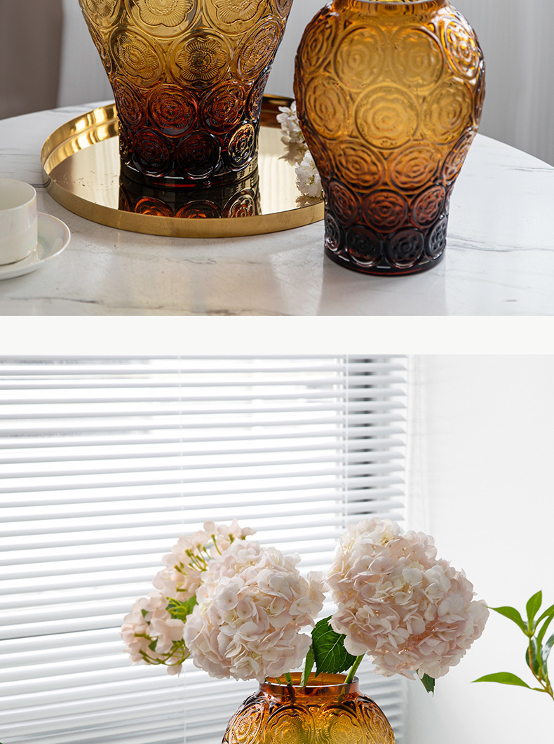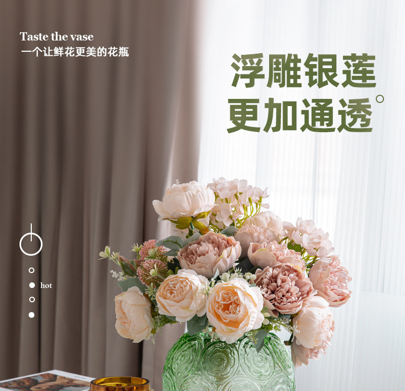 중국풍 레트로 양각 꽃병 은련 ins 스타일 두꺼운 유리 거실 장식품 신중국풍 꽃병