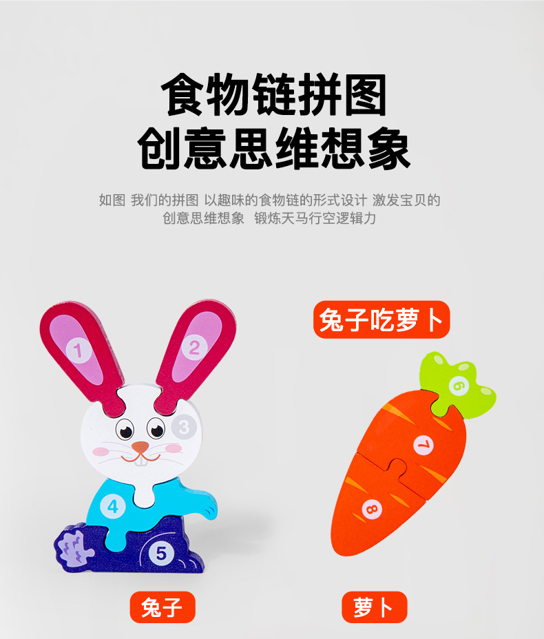 무료 배송 디지털 동물 먹이 사슬 퍼즐 퍼즐 빌딩 블록 장난감 나무 조기 교육 계몽 3 차원 나무 퍼즐스토어 가기