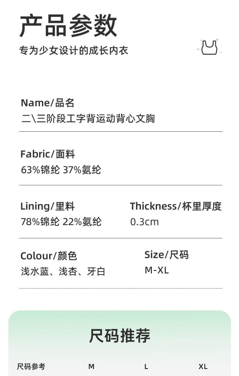 여아 속옷 사춘기 학생 중학교 여자 고등학교 여자 여자 작은 조끼 추적 없는 스포츠 브라