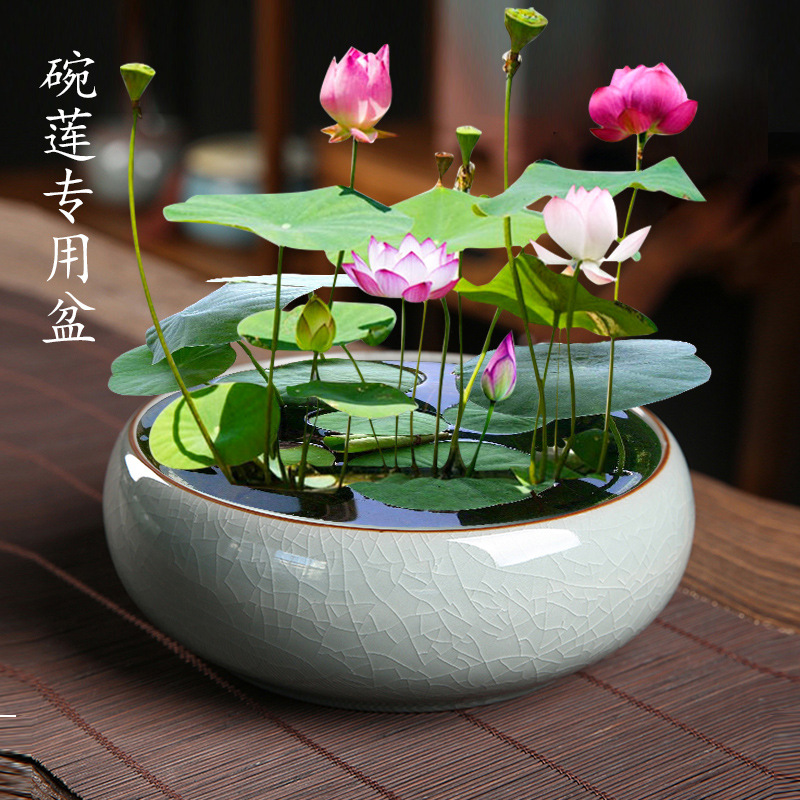 중국식 게 가마 그릇 연꽃 특수 수경 화분 세라믹 가정용 발코니 한 잎 연꽃 물 키우기 도구 분위기 장식품스토어 가기