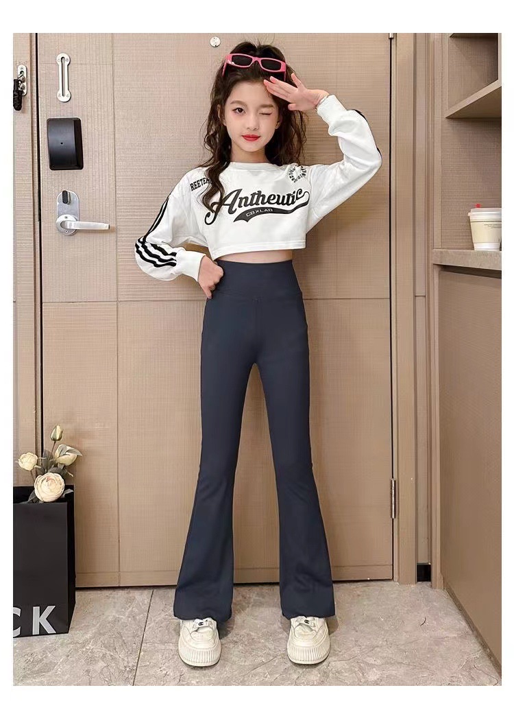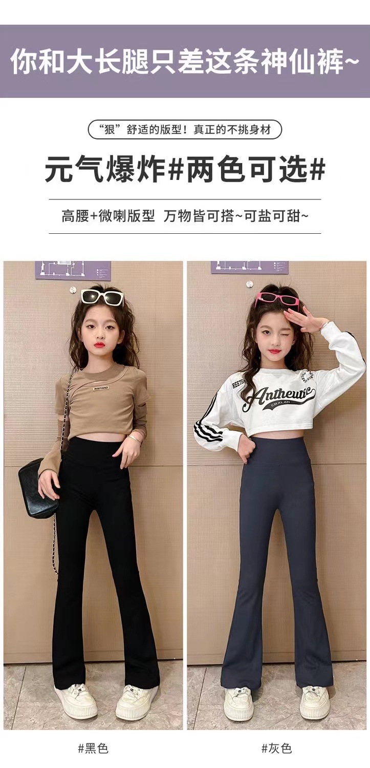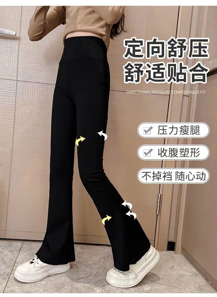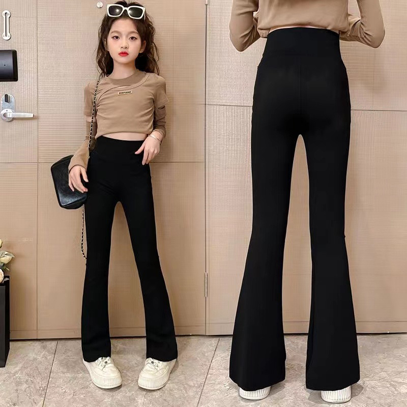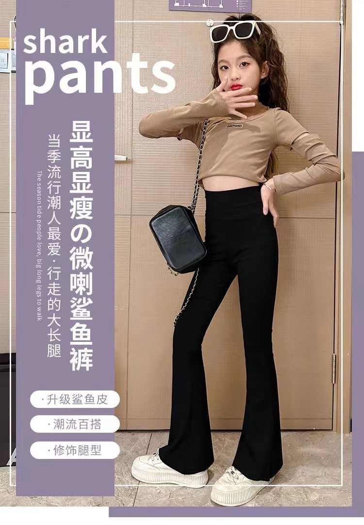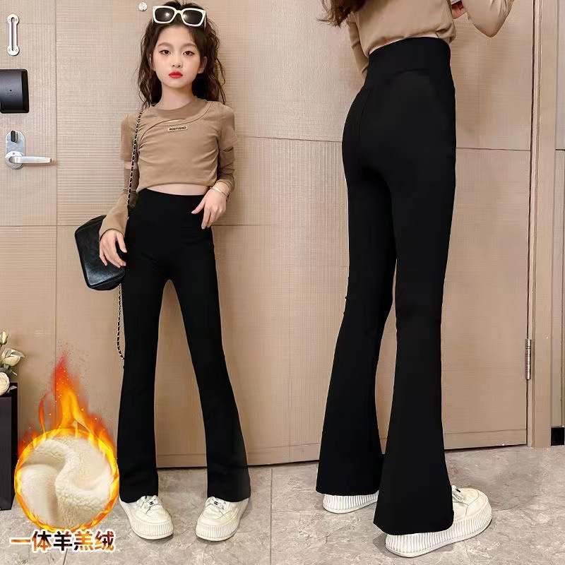 여아 바지 가을과 겨울 기모 플레어 팬츠 어린이 여아 상어 바지 하이 스트레치 슬림 핏 여아 두꺼운 레깅스