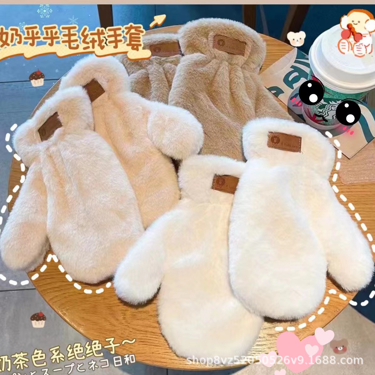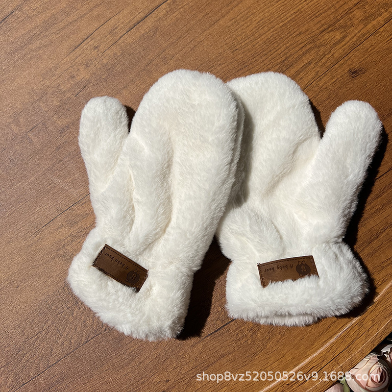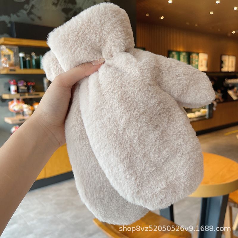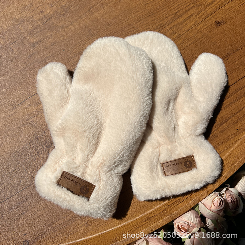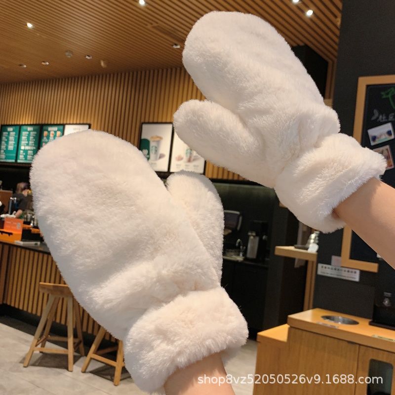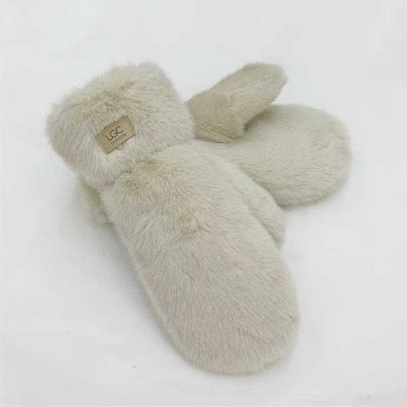 겨울 장갑 도매 봉제 패딩 따뜻한 여성의 봉제 손가락 귀여운 간단한 모조 토끼 모피 학생 장갑 크로스 보더스토어 가기