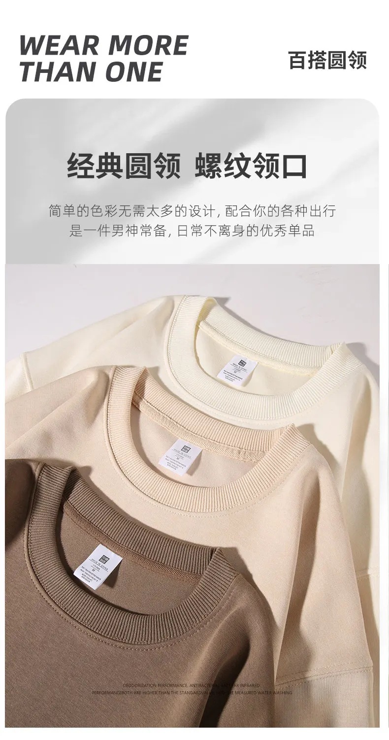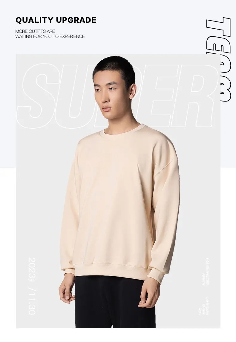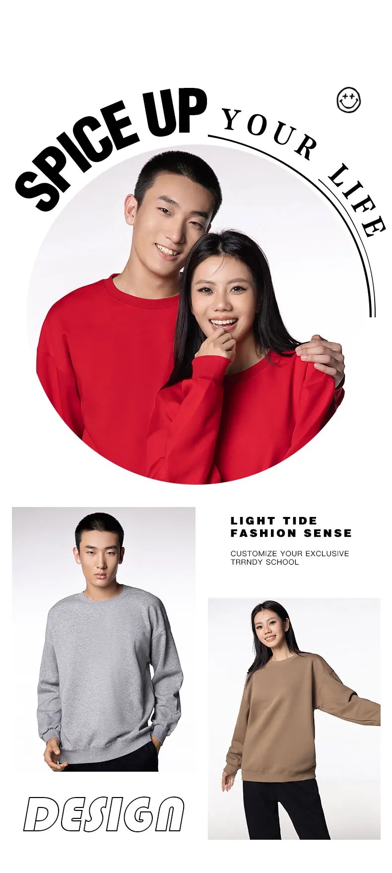 320g 라운드 넥 느슨한 드롭 어깨 두꺼운 스웨터 남성 가을, 겨울 간단한 캐주얼 긴팔 탑 도매 맞춤 인쇄