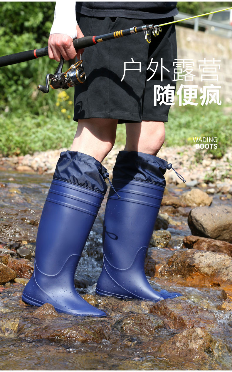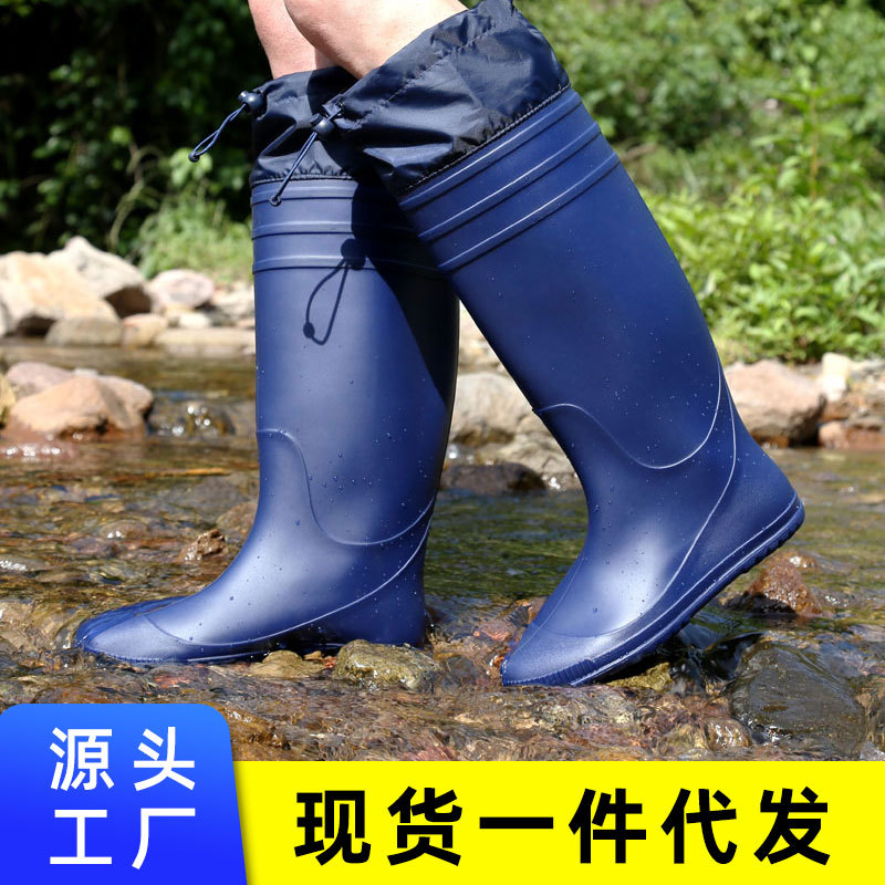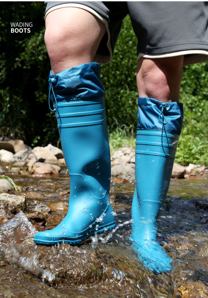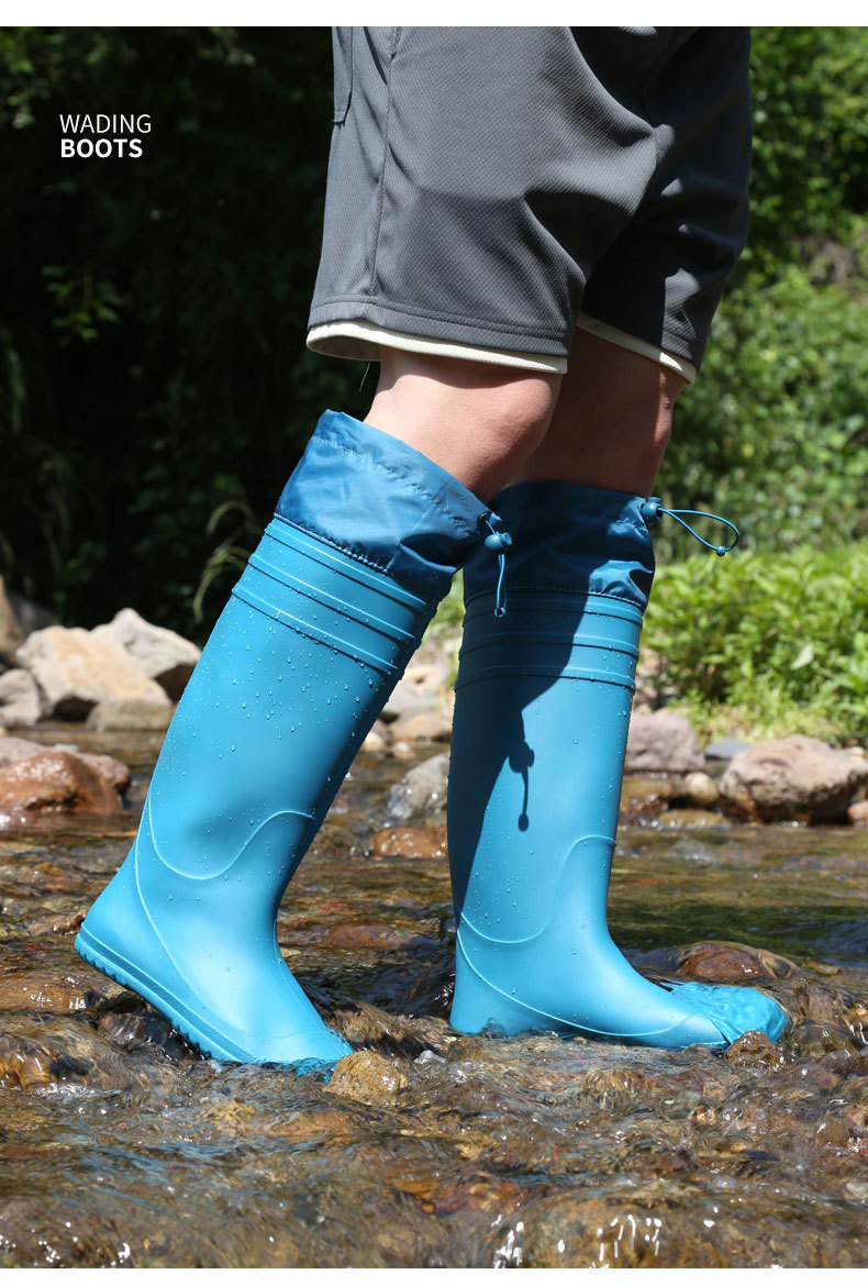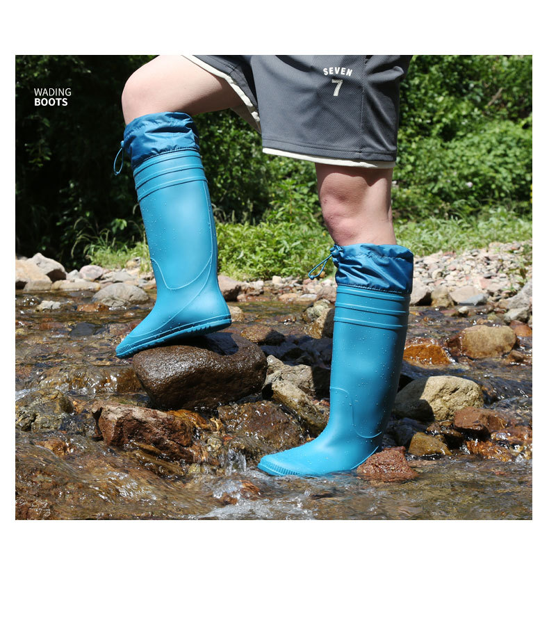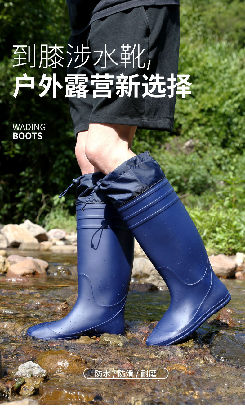 높은 튜브 베벨 쌀 심기 신발 남성과 여성의 한국 스타일 방수 레인 슈즈 단색 장화 유행 긴 튜브 야외 사이드 신발스토어 가기