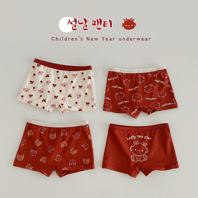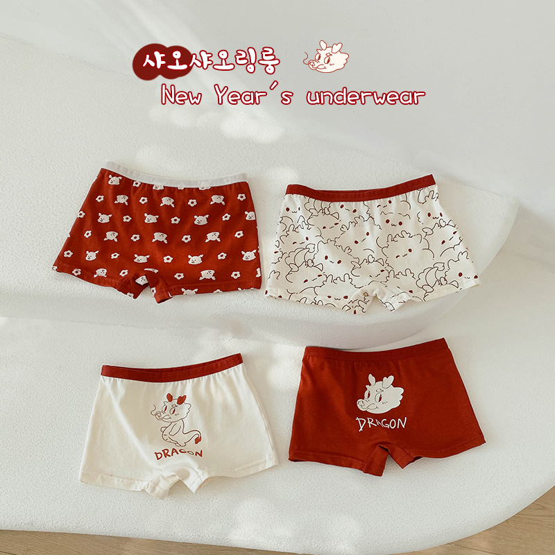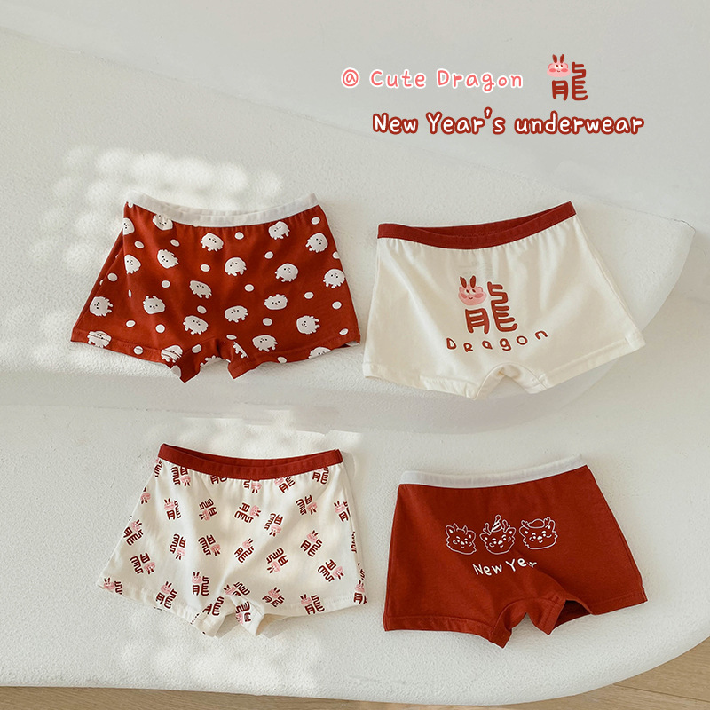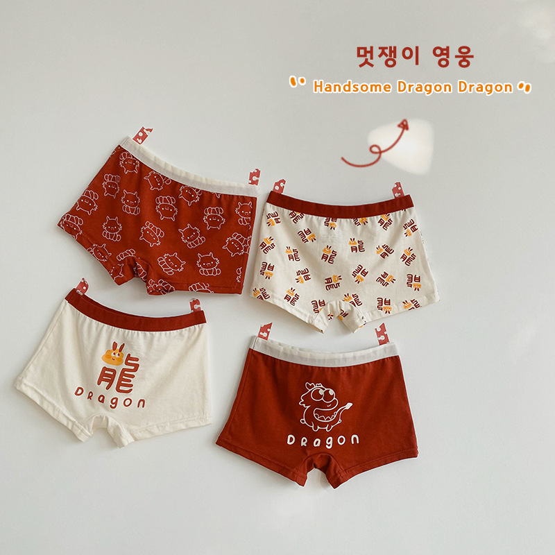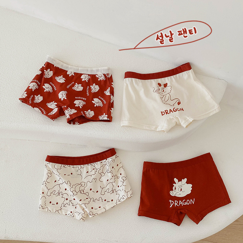 N133 새해 어린이 속옷 4 팩 도매 용의 해 만화 아기 반바지 면 복서 여아 속옷
