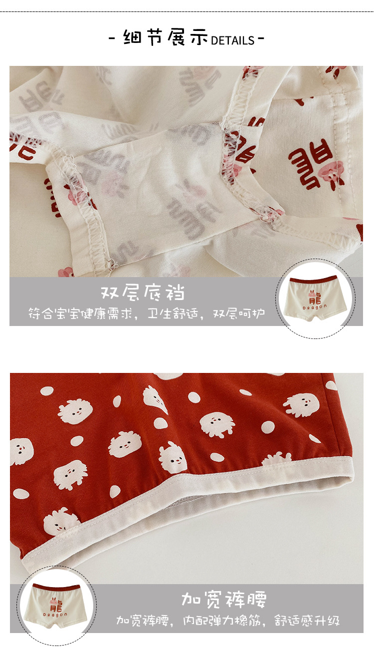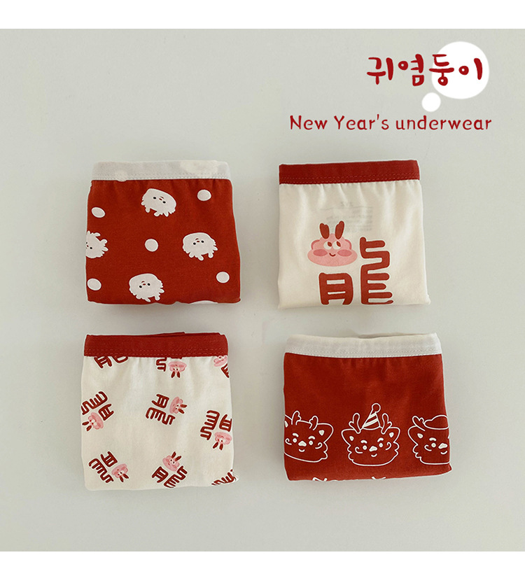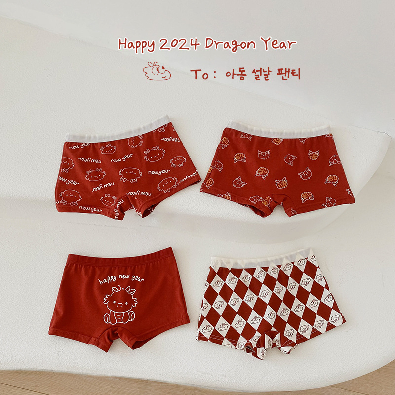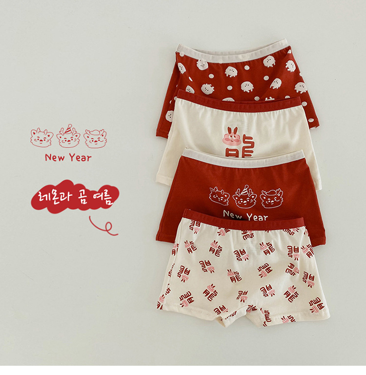 N133 새해 어린이 속옷 4 팩 도매 용의 해 만화 아기 반바지 면 복서 여아 속옷스토어 가기