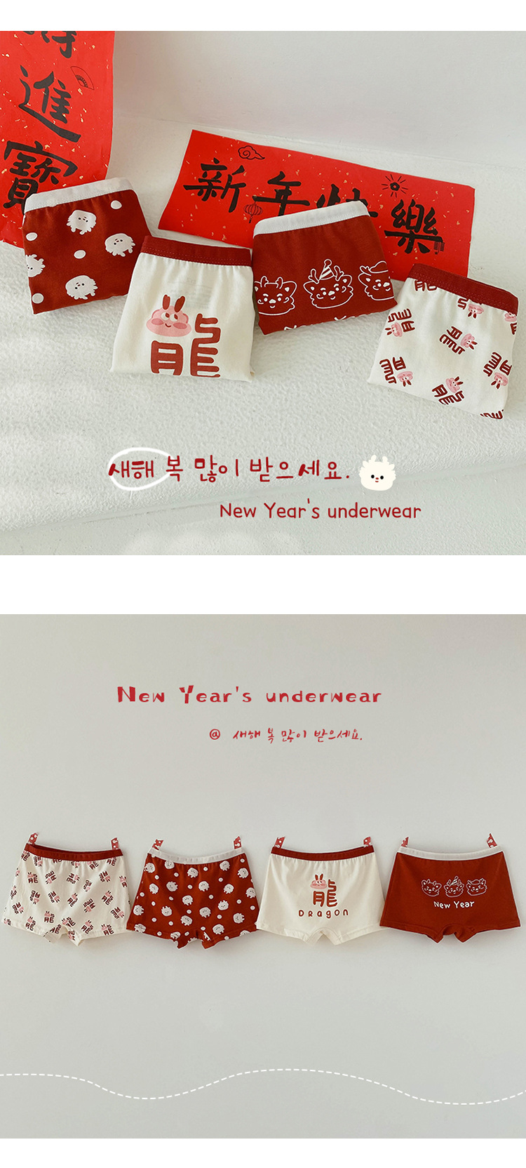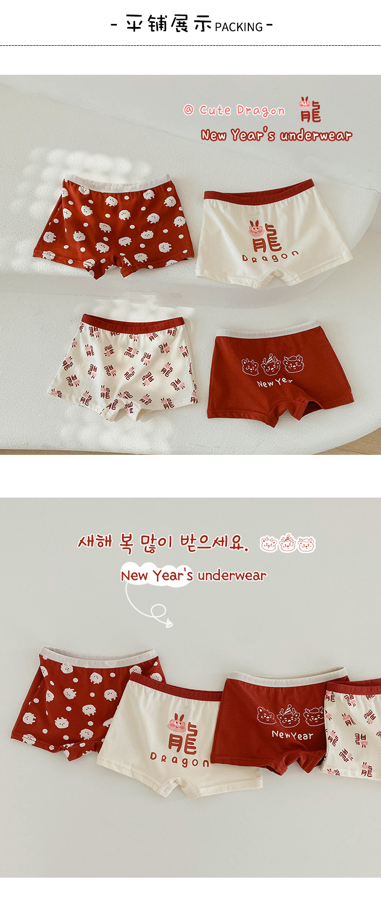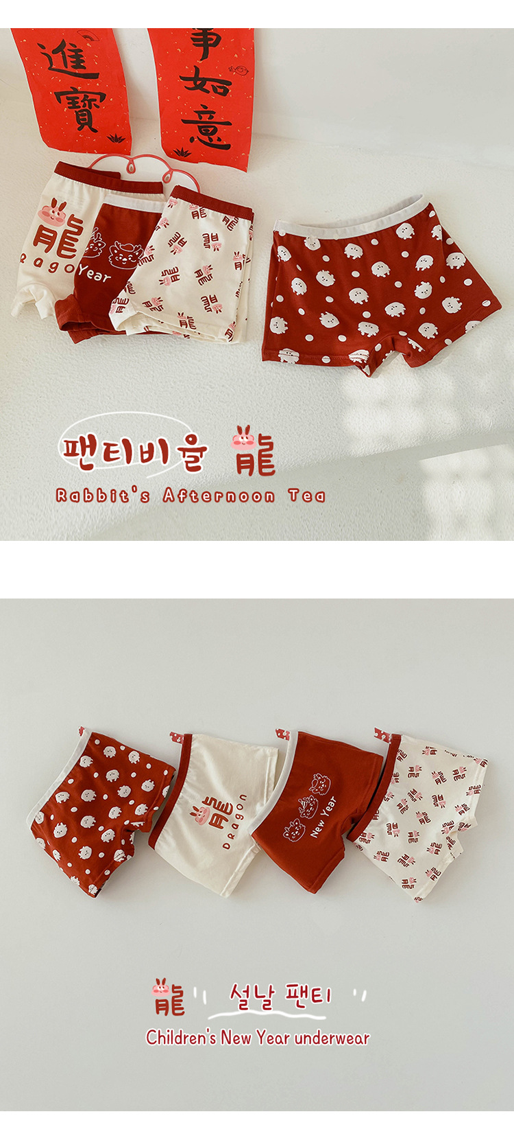 N133 새해 어린이 속옷 4 팩 도매 용의 해 만화 아기 반바지 면 복서 여아 속옷스토어 가기