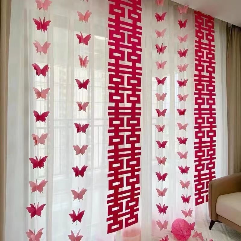 웨딩 룸 레이아웃 세트 3 차원 나비 꽃 웨딩 장식 새로운 집 침실 거실 해피 캐릭터 꽃 커튼 펜던트