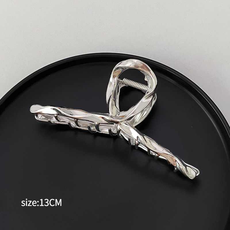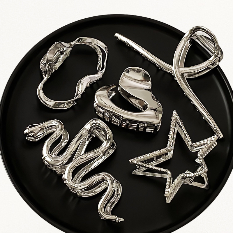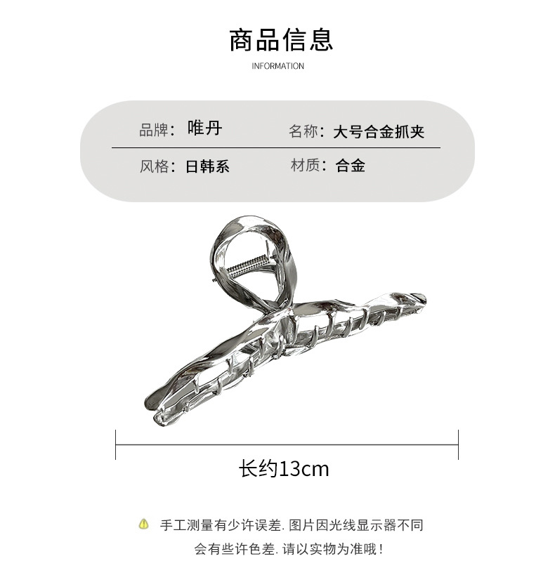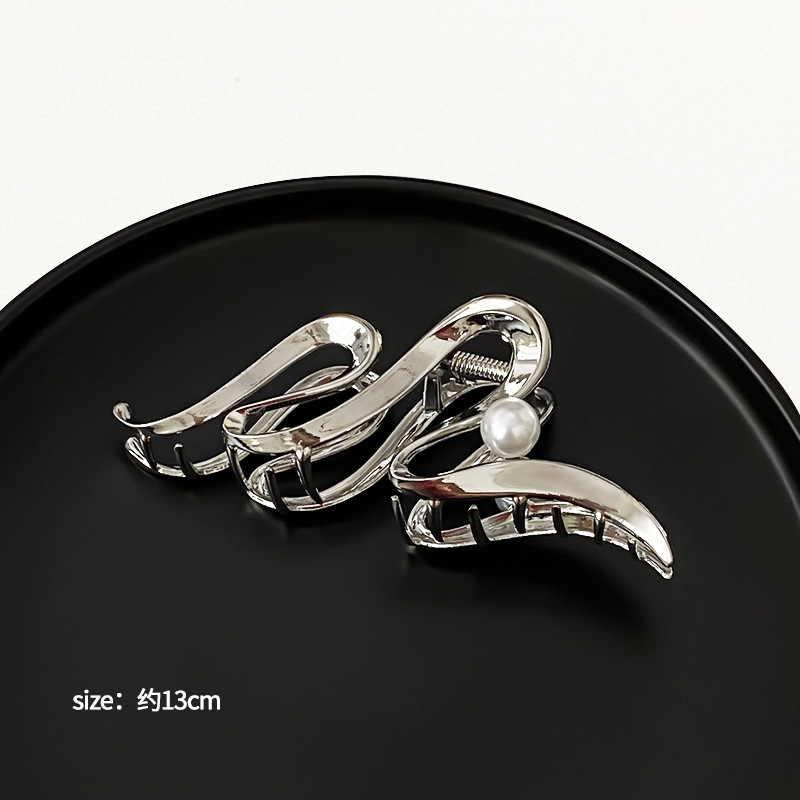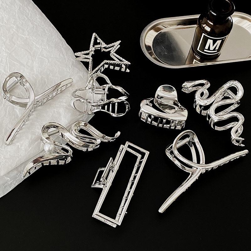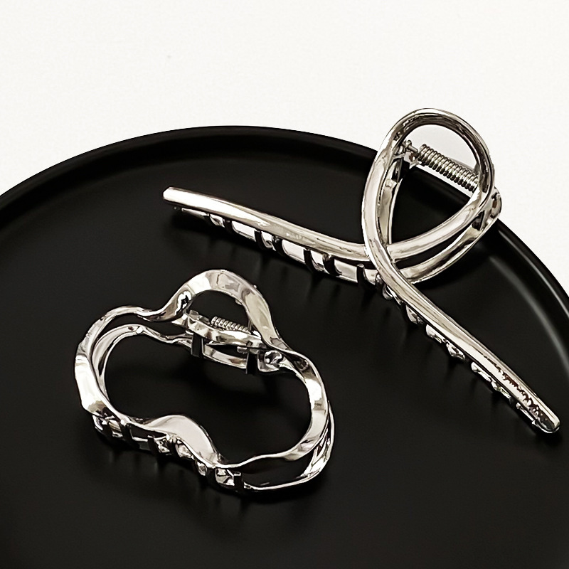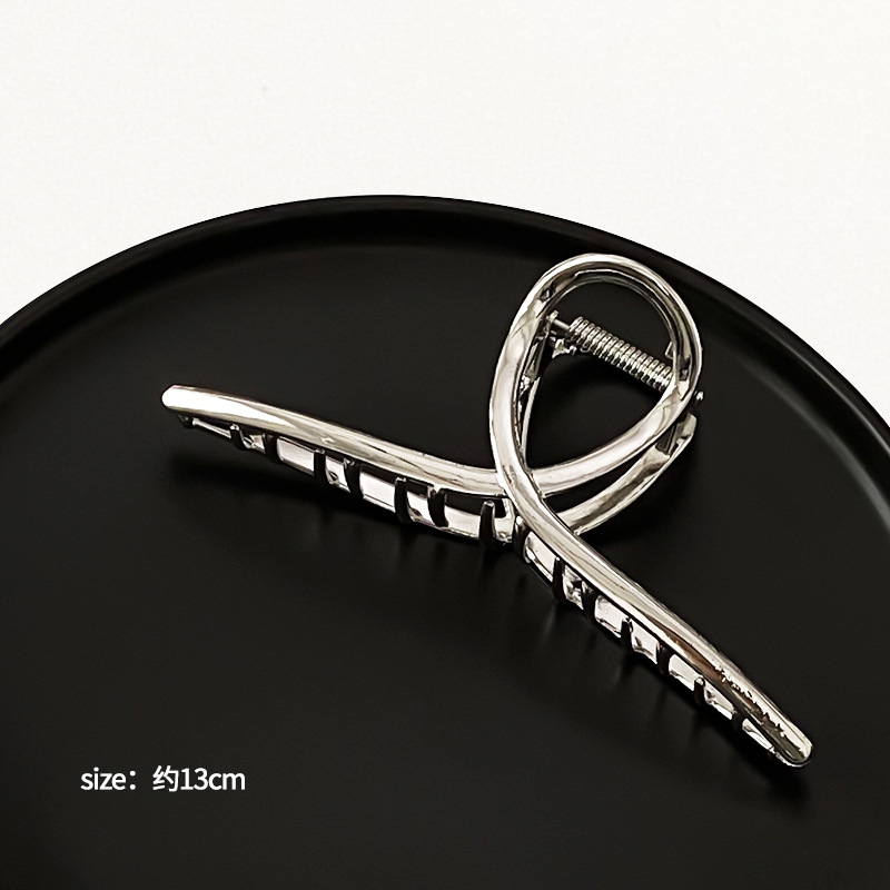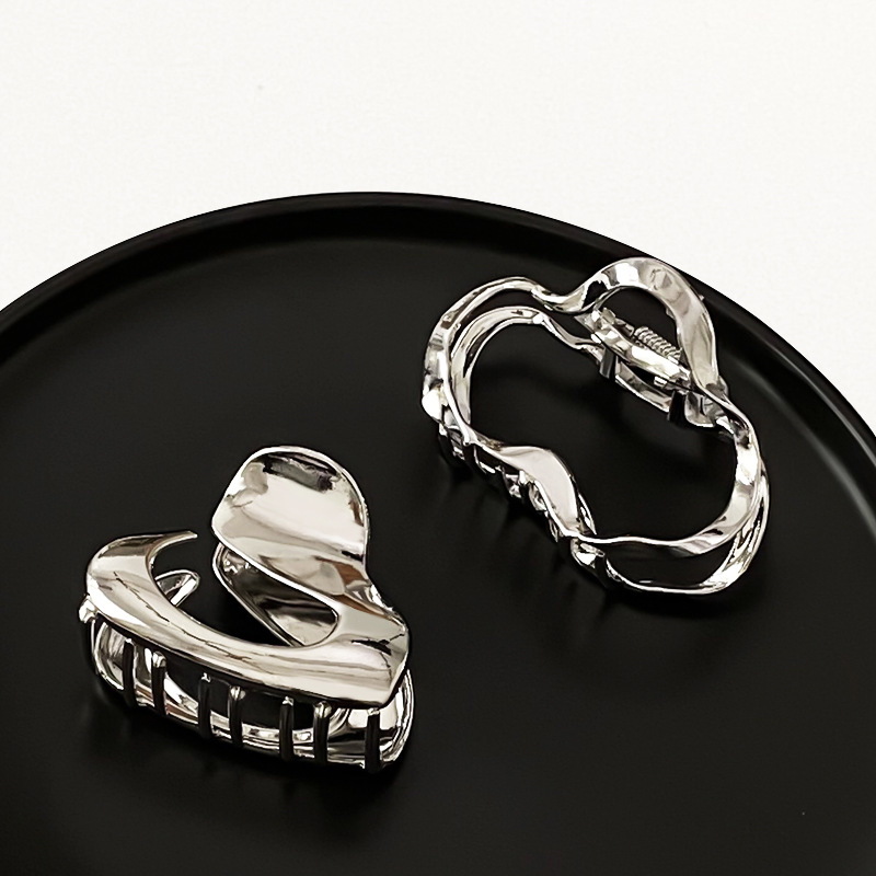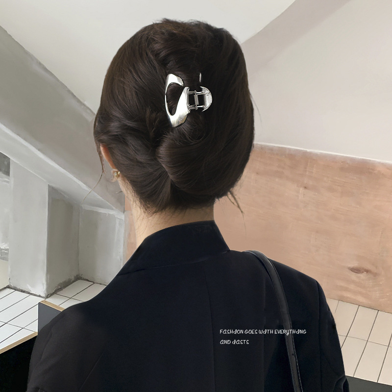 차가운 바람 실버 큰 그랩 클립 머리 덜 상어 클립 금속 틈새 디자인 감각 클립 머리핀 여자의 높은 감각스토어 가기