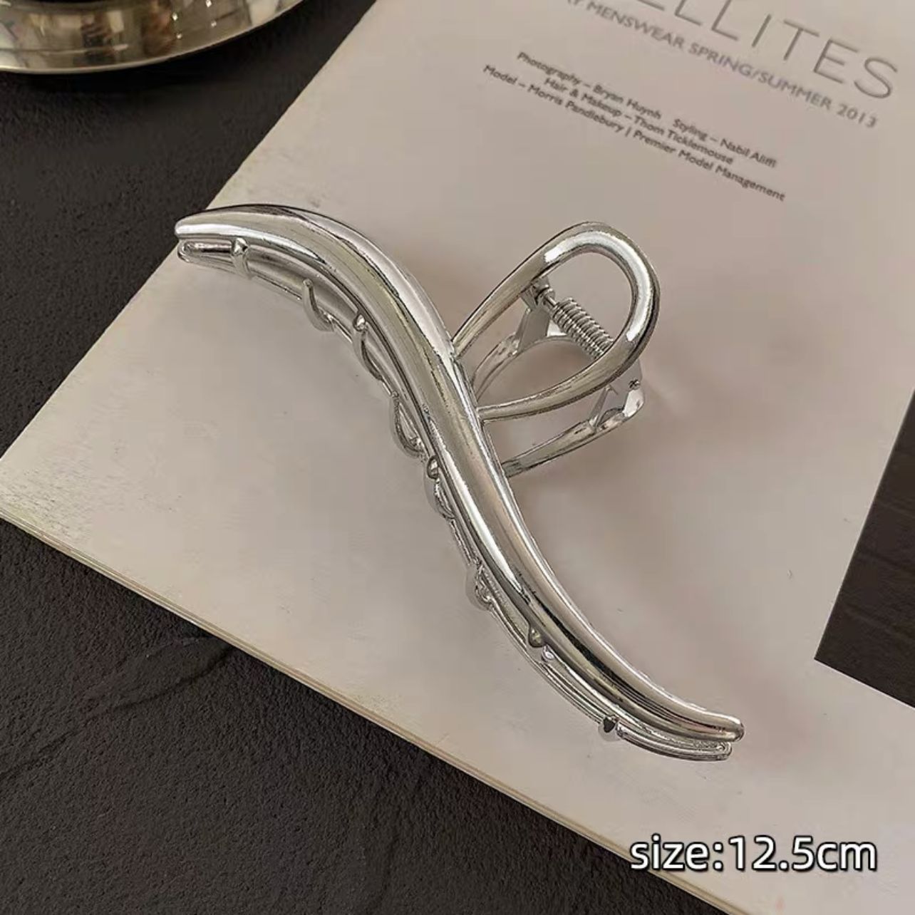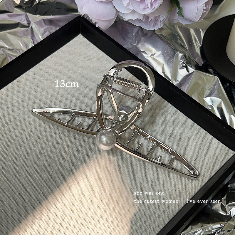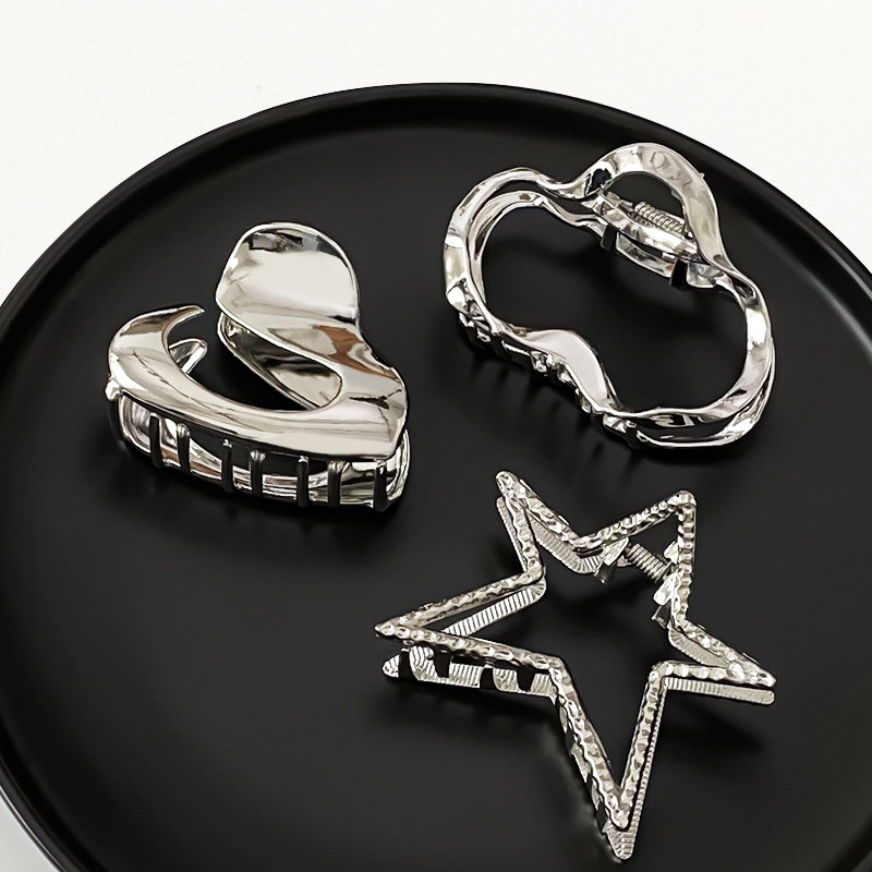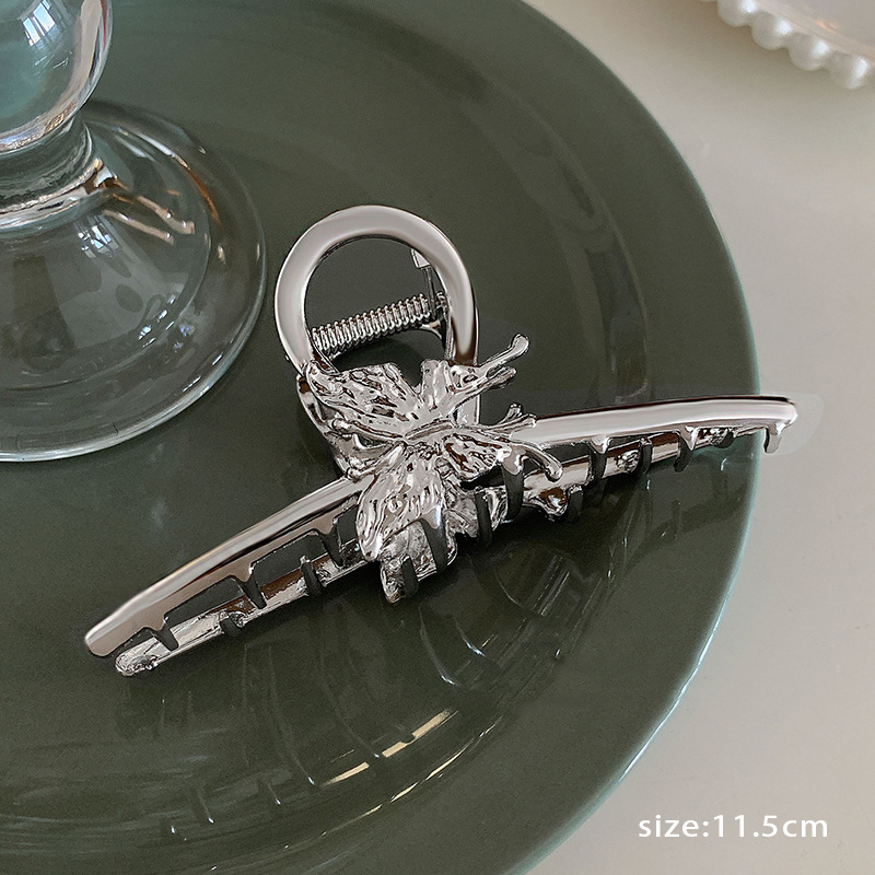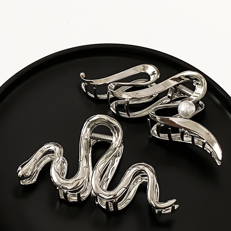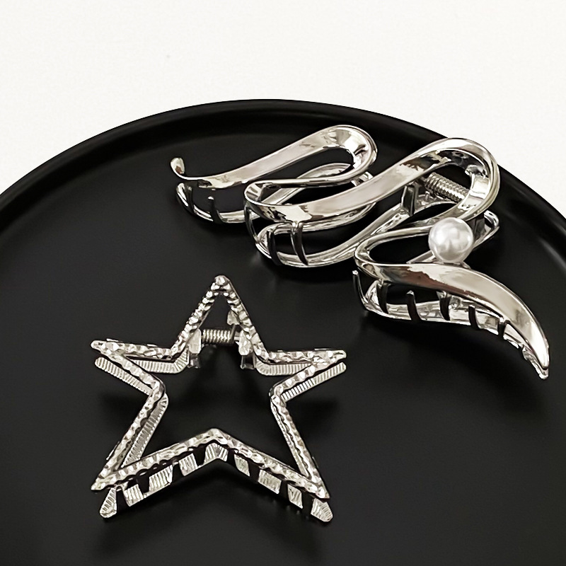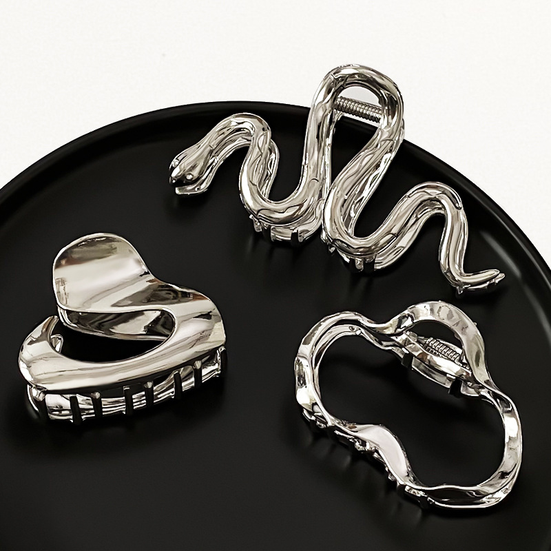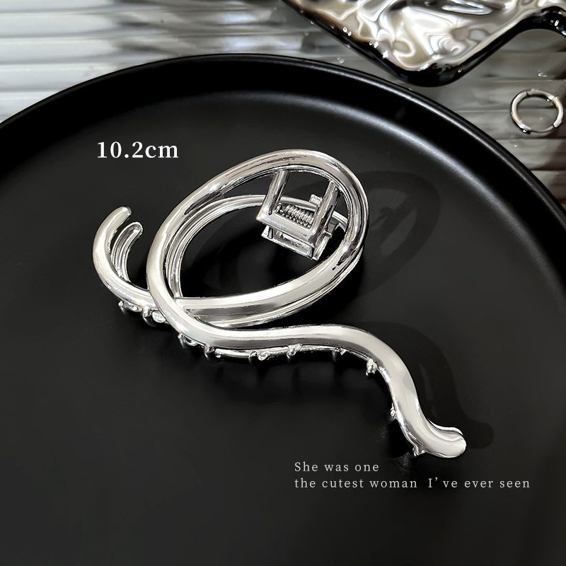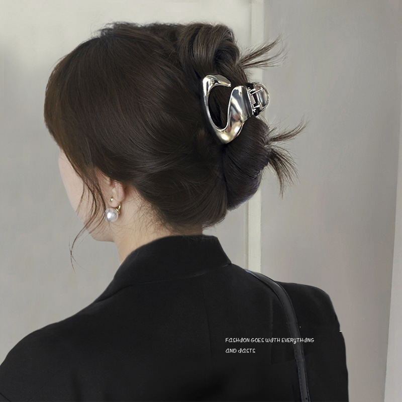 차가운 바람 실버 큰 그랩 클립 머리 덜 상어 클립 금속 틈새 디자인 감각 클립 머리핀 여자의 높은 감각스토어 가기