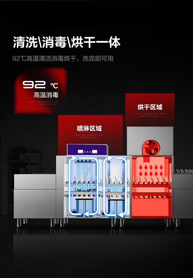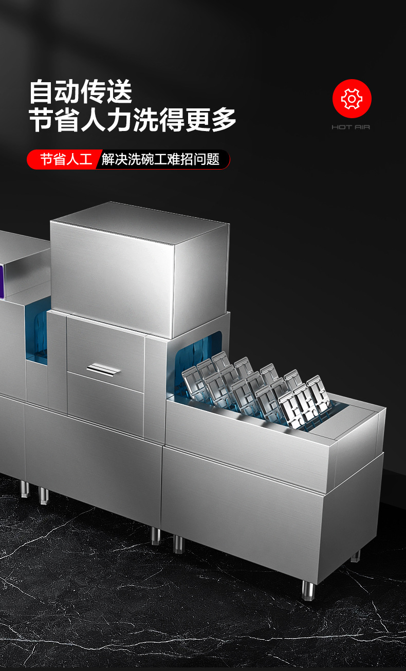 Hilaisheng 상업용 긴 라인 식기 세척기 자동 대형 식기 세척기 304 스테인레스 스틸 유닛 주방 그릇 브러시 기계스토어 가기