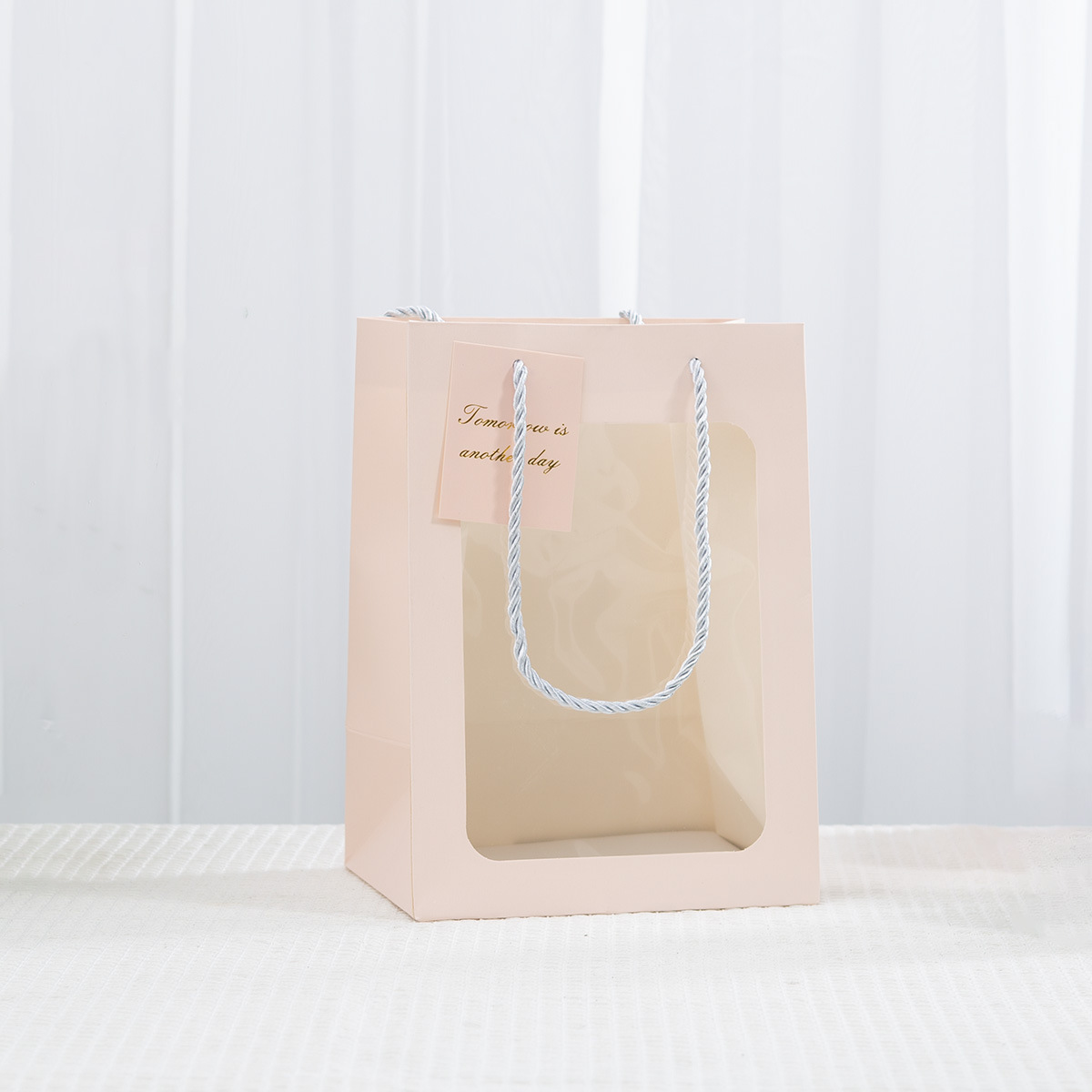 • 로프 핑크 선물 가방 3 가닥; 흰색 판지; 25*15*35