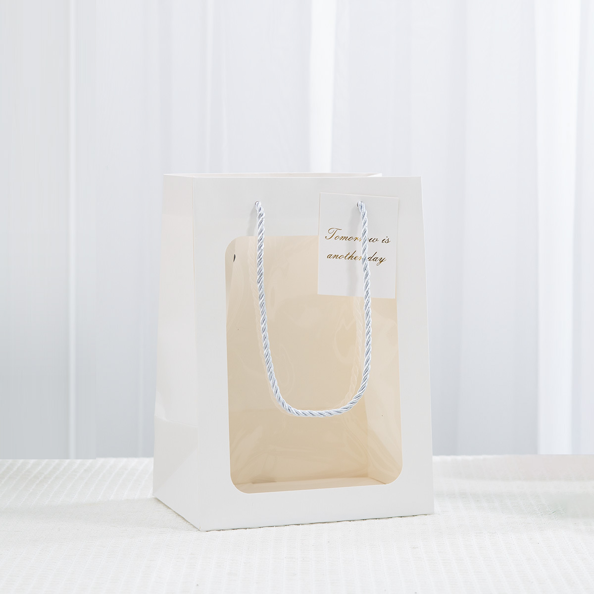 • 3 가닥의 로프 흰색 선물 가방; 흰색 판지; 25*15*35