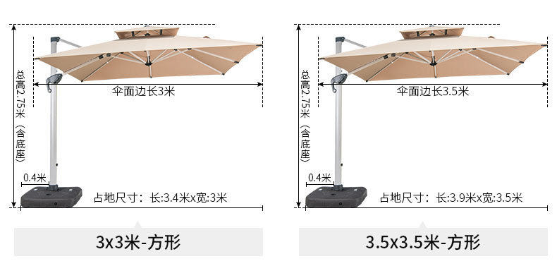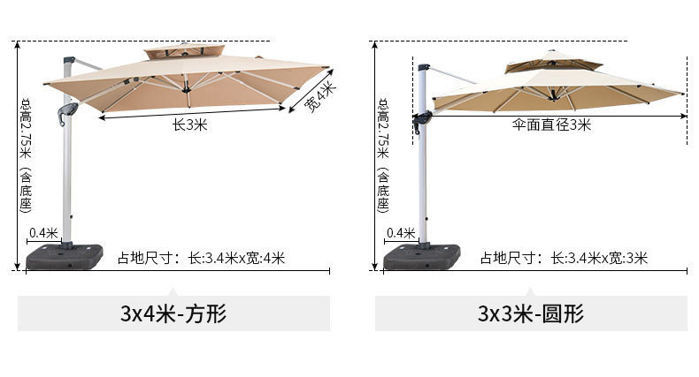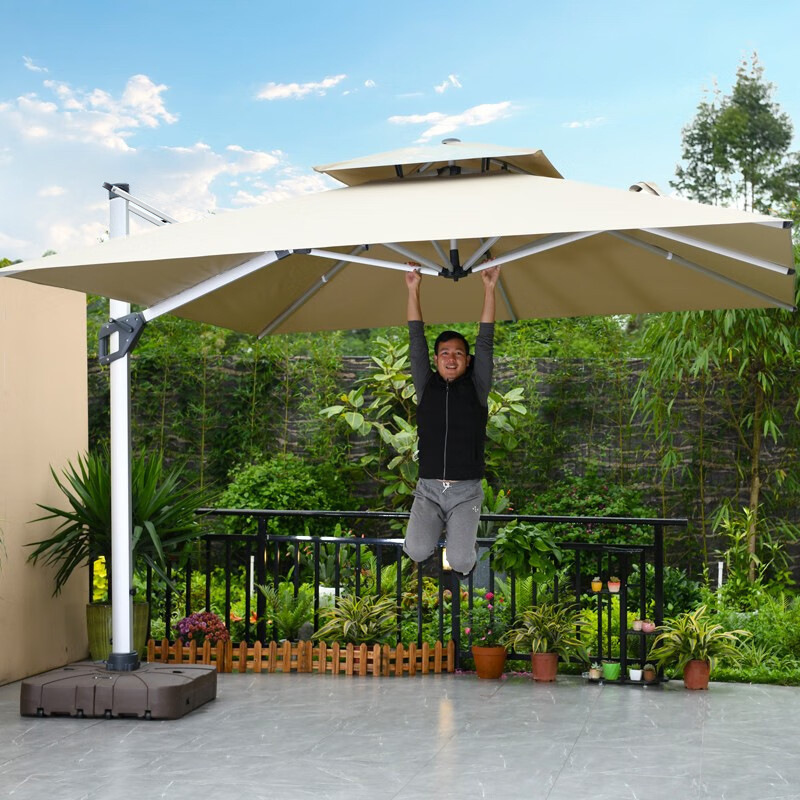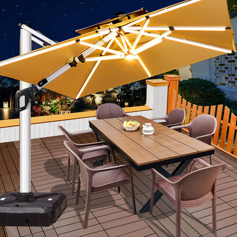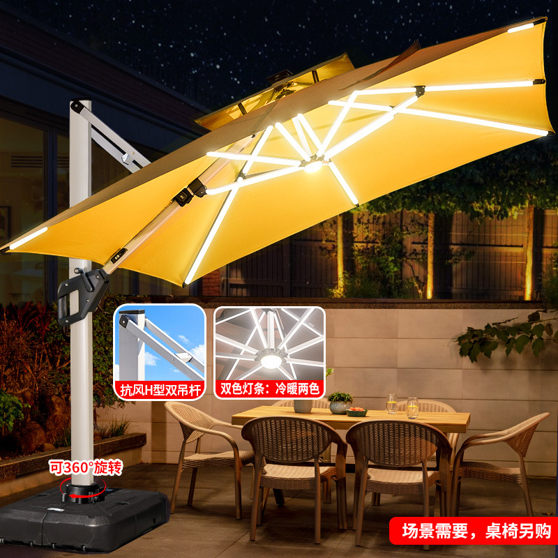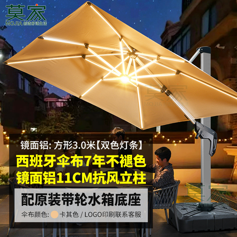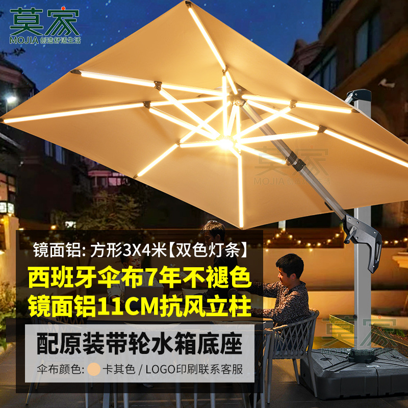 • 거울 알루미늄 대형 우산: 3* 4m 고급 물 탱크 베이스 포함(11CM 폴-2색 라이트 스트립)