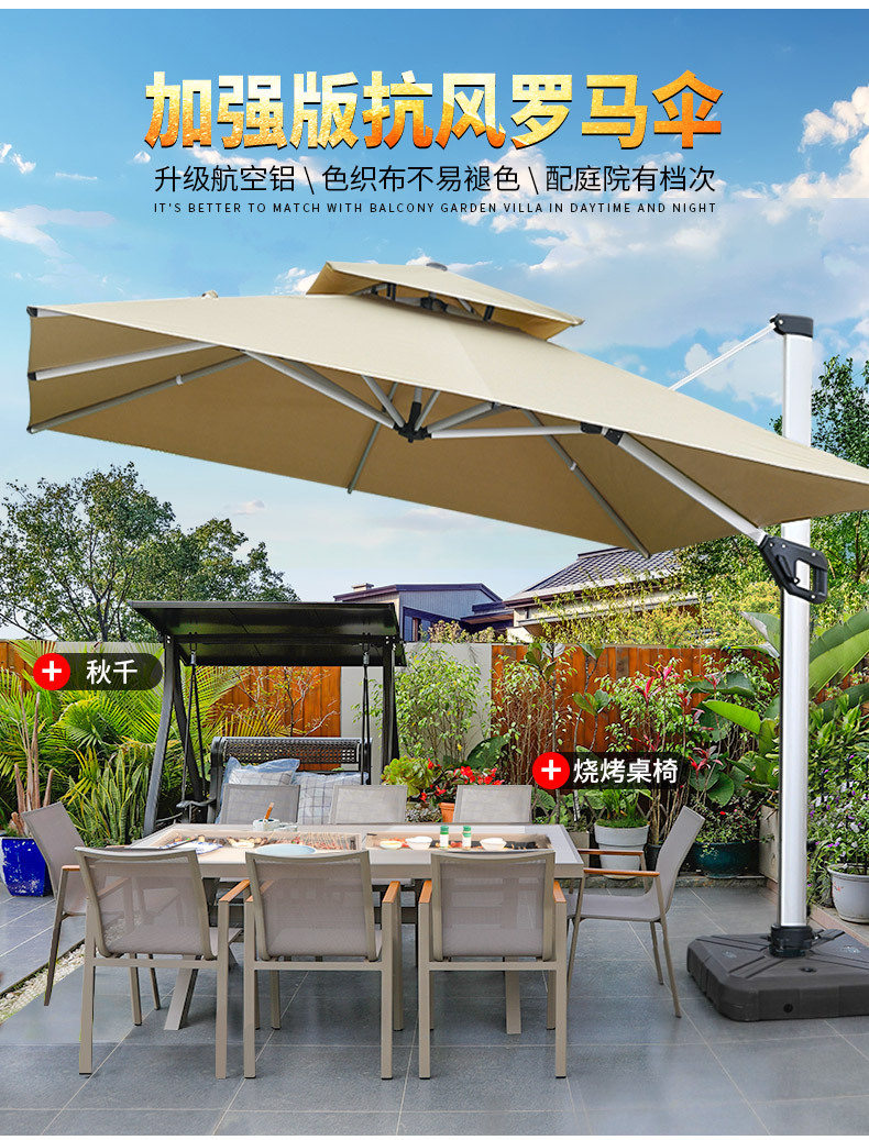 Mojia 직접 판매 대형 야외 파라솔 대형 물 탱크 태양 우산 광장 로마 우산 3 m 안뜰 옆 우산