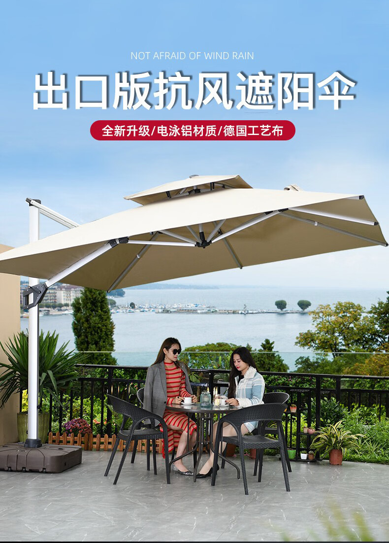 • 거울 알루미늄 대형 우산: 3* 4m 250kg 바퀴가 달린 물 탱크 + 11CM 공간 알루미늄 기둥