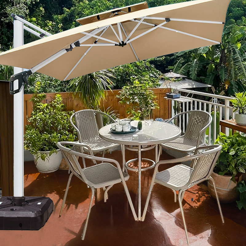 • 의자 4개 + 80CM 유리 원형 테이블 + 2.5m 우산