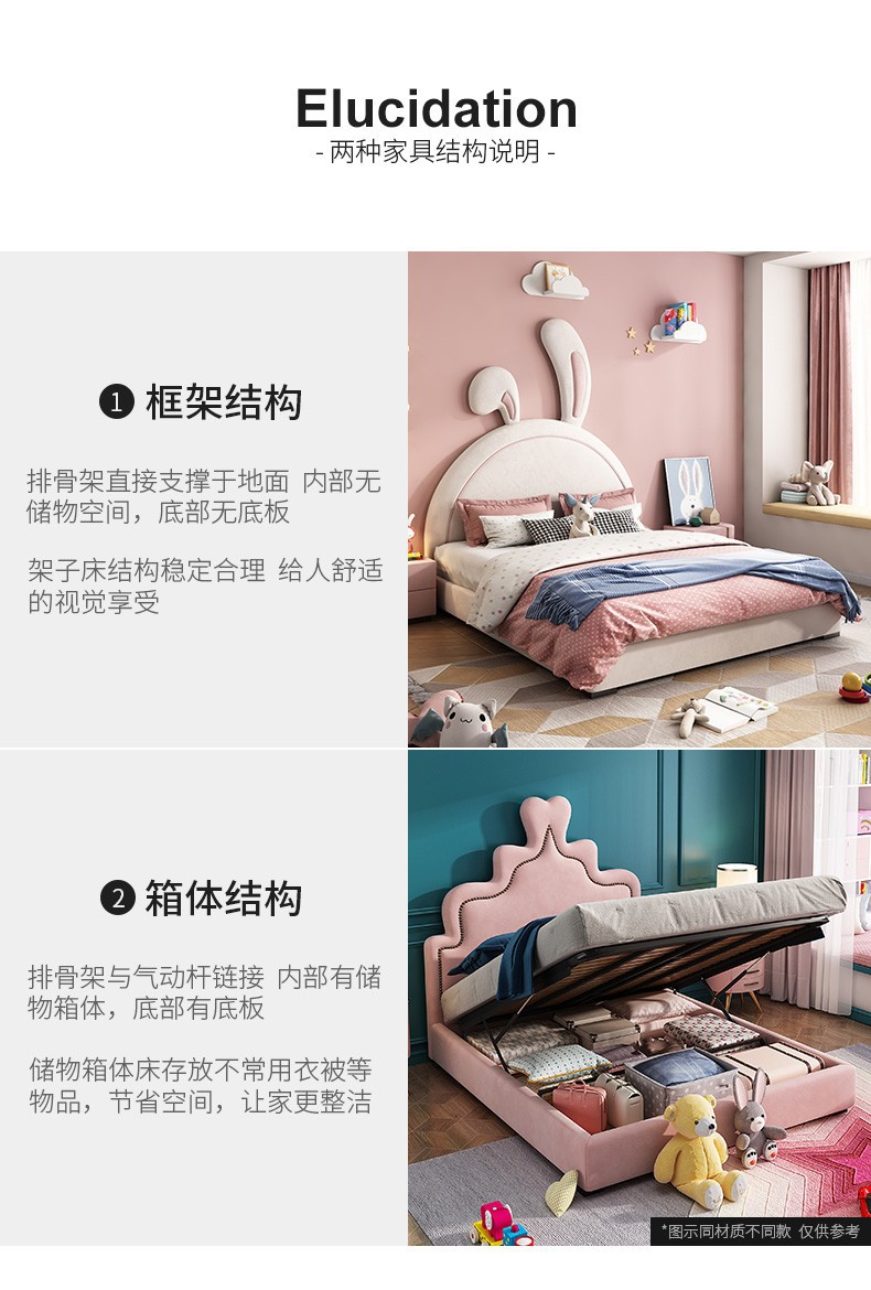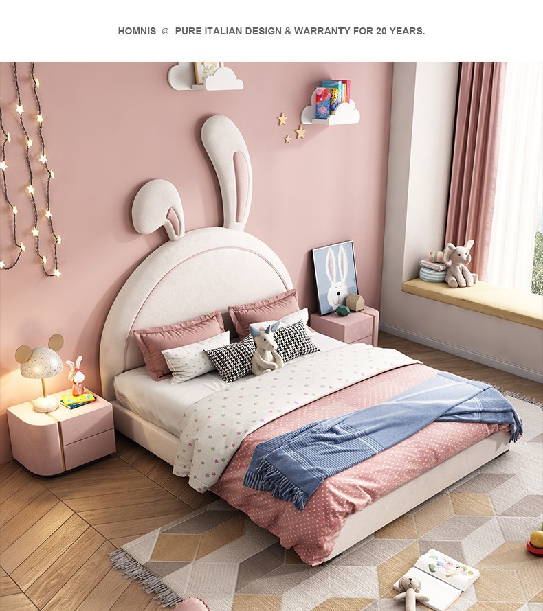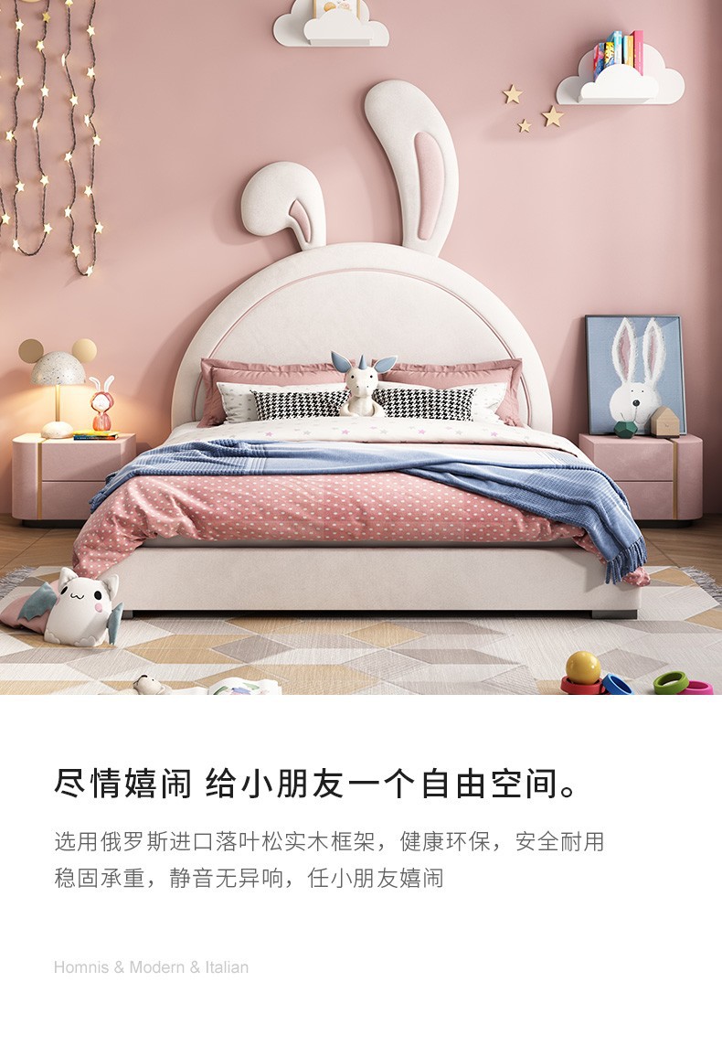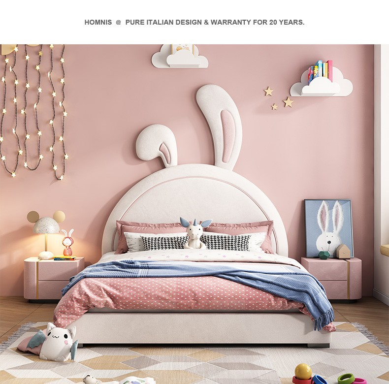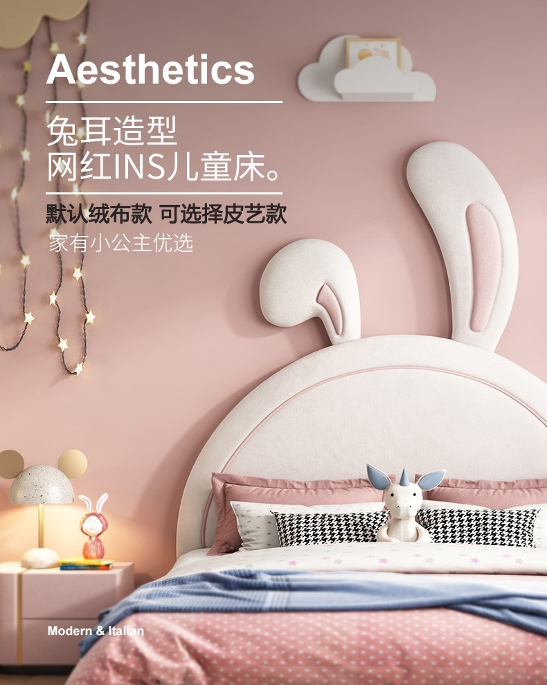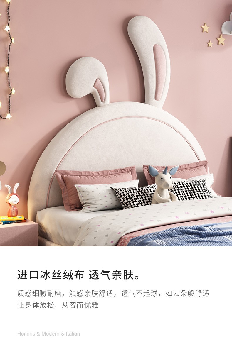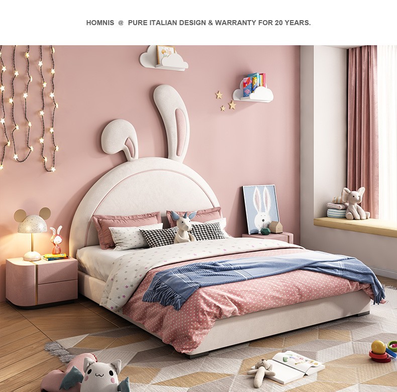 어린이 침대 소녀 공주 침대 토끼 핑크 소녀 싱글 귀여운 인터넷 인기 Ins 스타일 소녀 침실스토어 가기