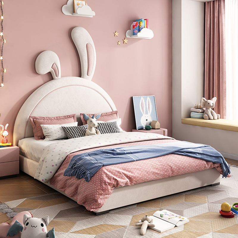 어린이 침대 소녀 공주 침대 토끼 핑크 소녀 싱글 귀여운 인터넷 인기 Ins 스타일 소녀 침실