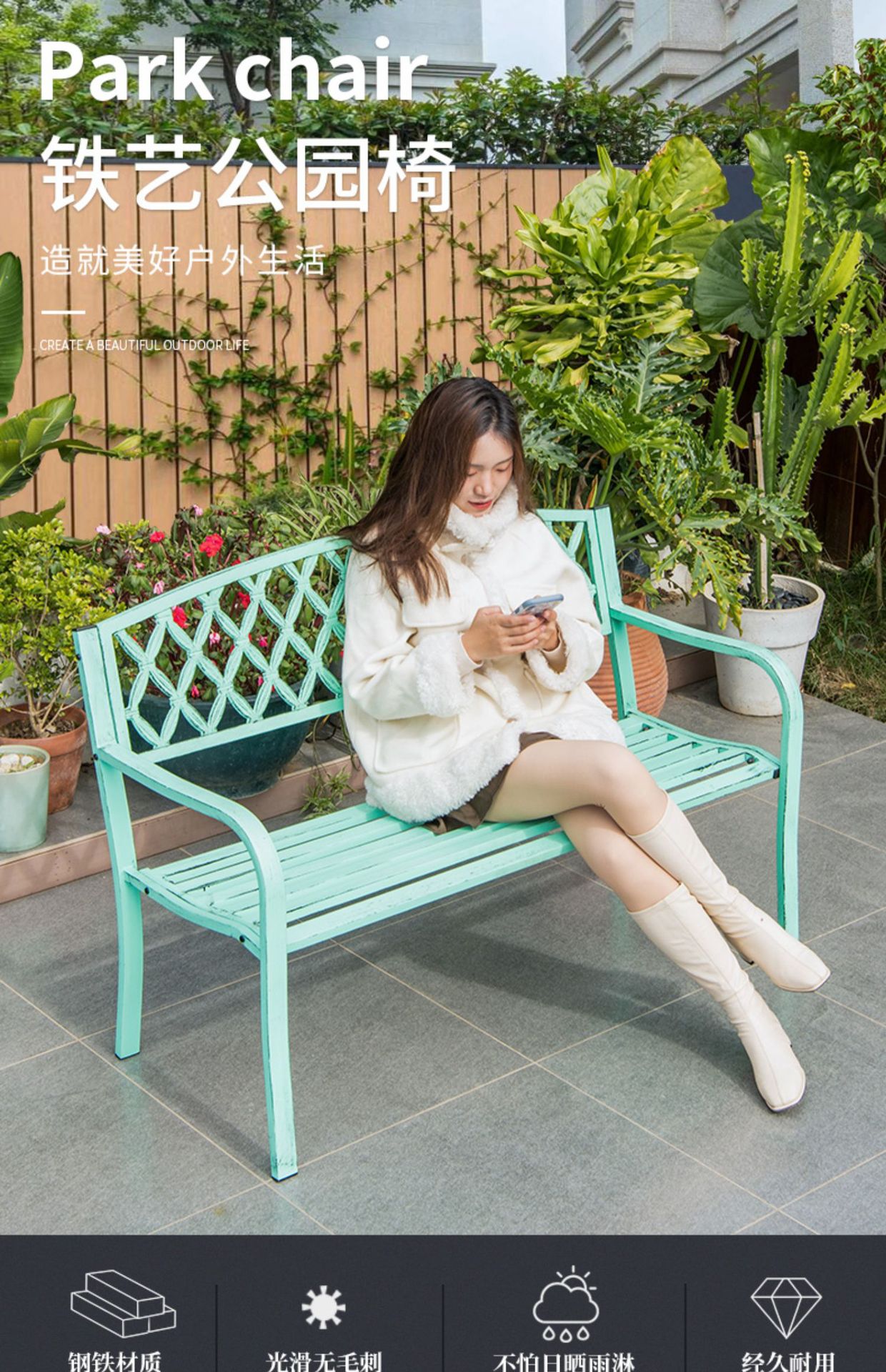• 100CM 더블 그리드 공원 의자 (녹색)