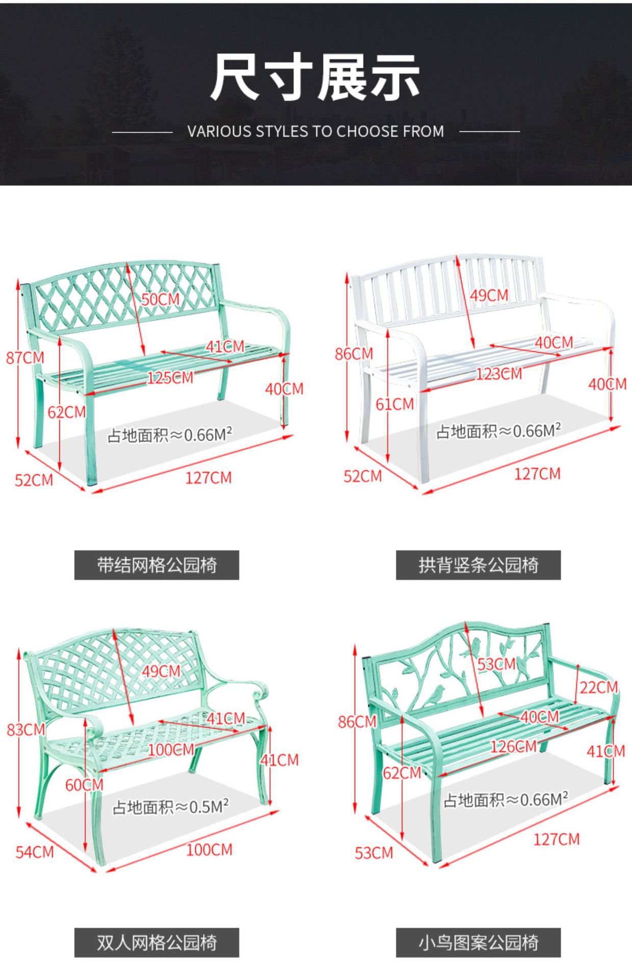 • 127CM 새 패턴 공원 의자