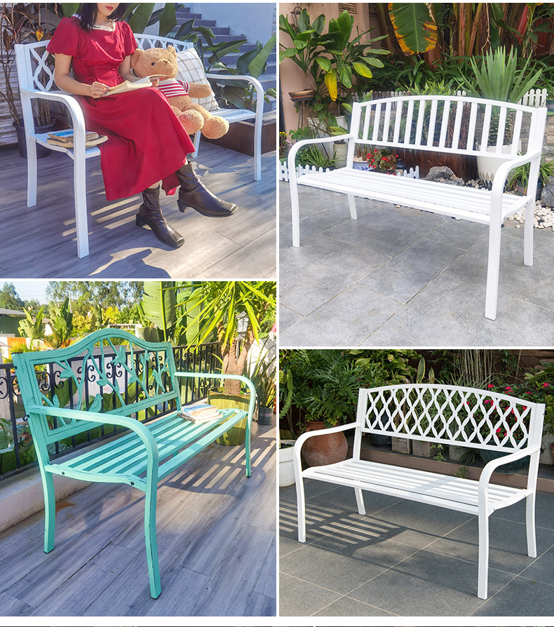 공원 의자, 야외 벤치, 야외 벤치, 안뜰 레저용 의자, 플라스틱 목재 및 철제 등받이 야외 가구