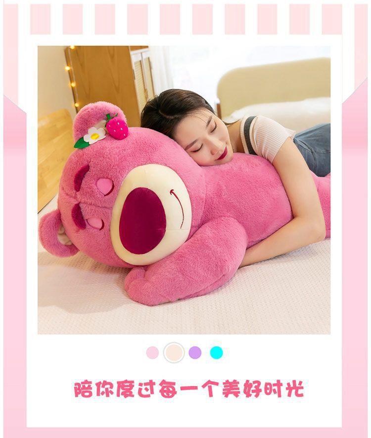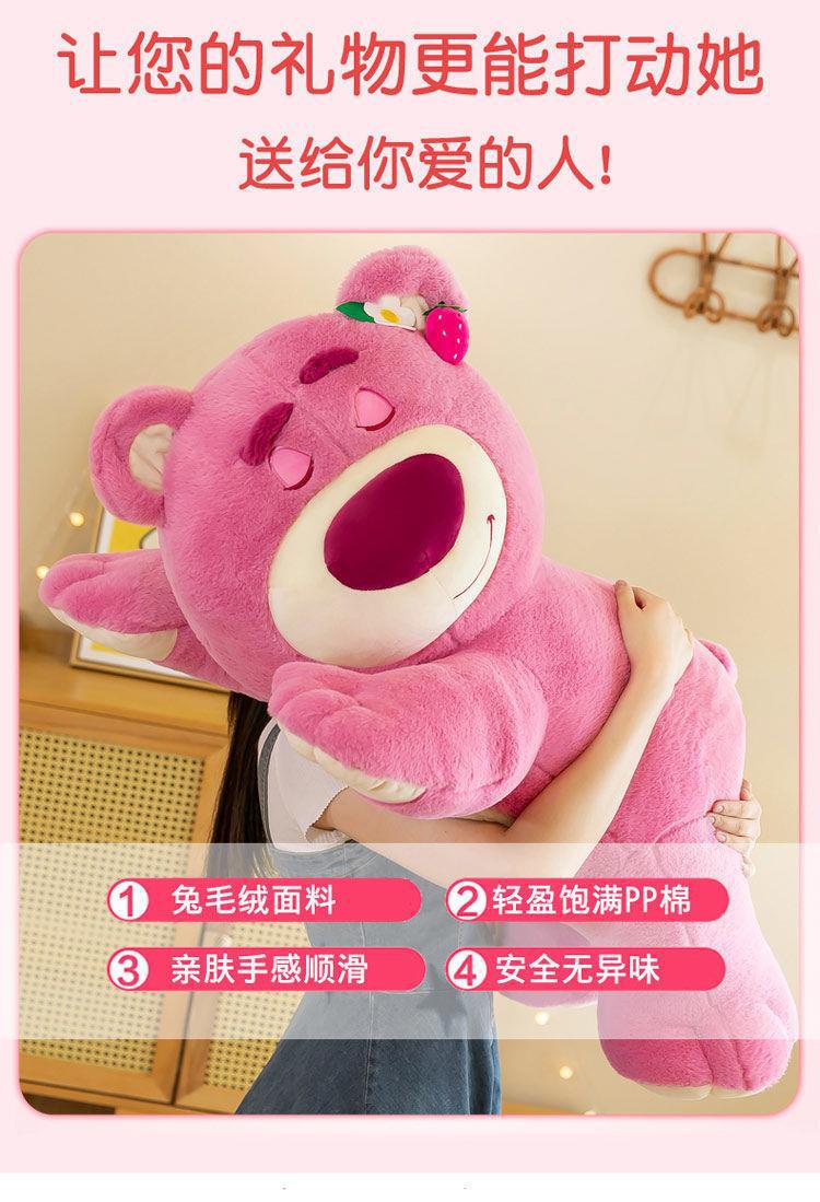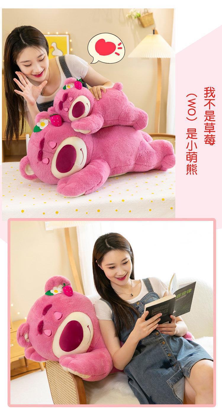 직접 판매 폭발 딸기 맛 테디 베어 큰 딸기 핑크 인형 곰 수면 베개 인형 선물의 경향이있는 버전 거짓말스토어 가기