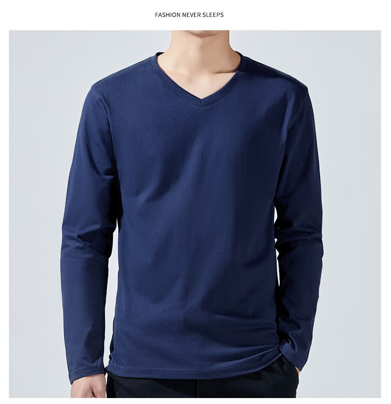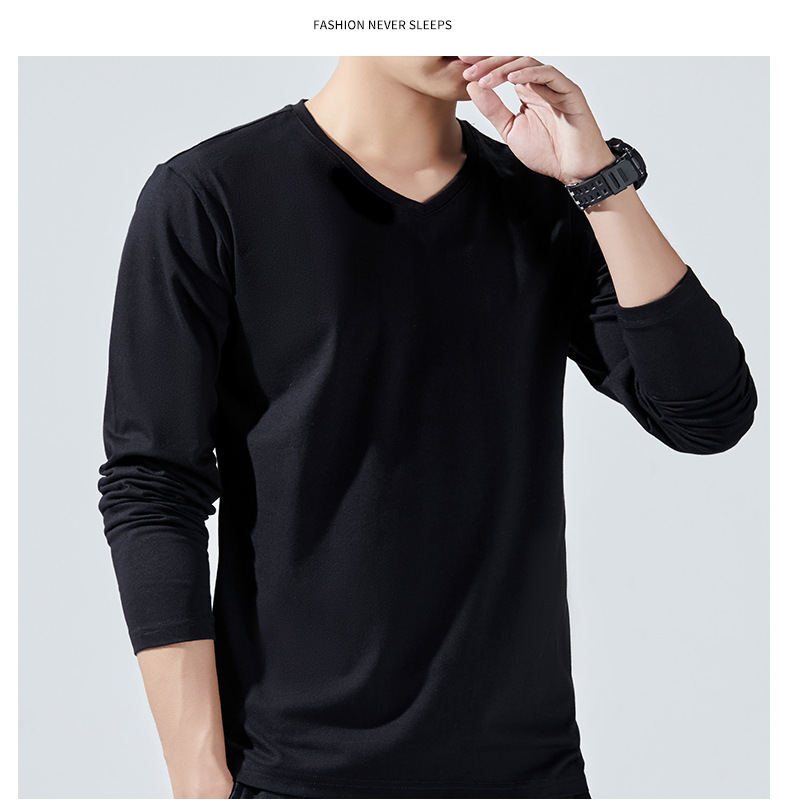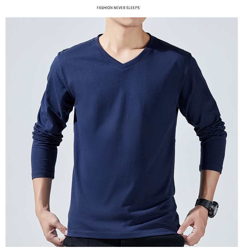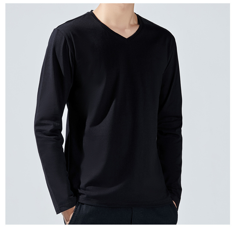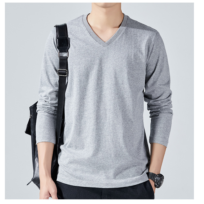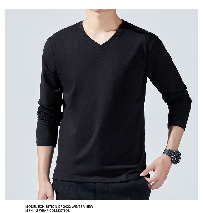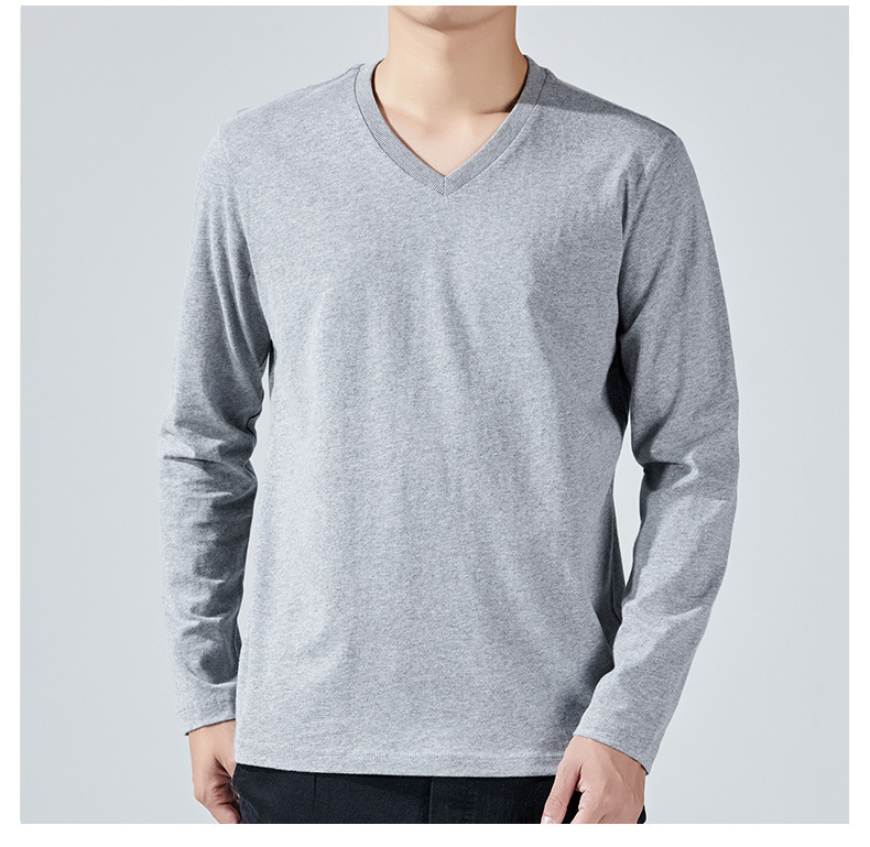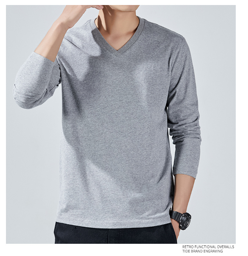 남자의 플러스 사이즈 가을 바닥 셔츠 단색 V 넥 긴 소매 얇은 느슨한 면 티셔츠 제조 업체 도매스토어 가기
