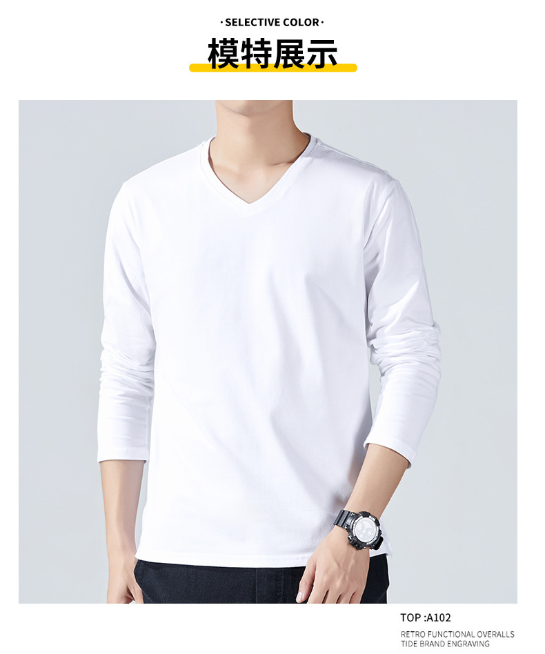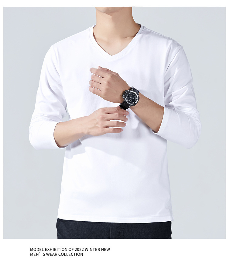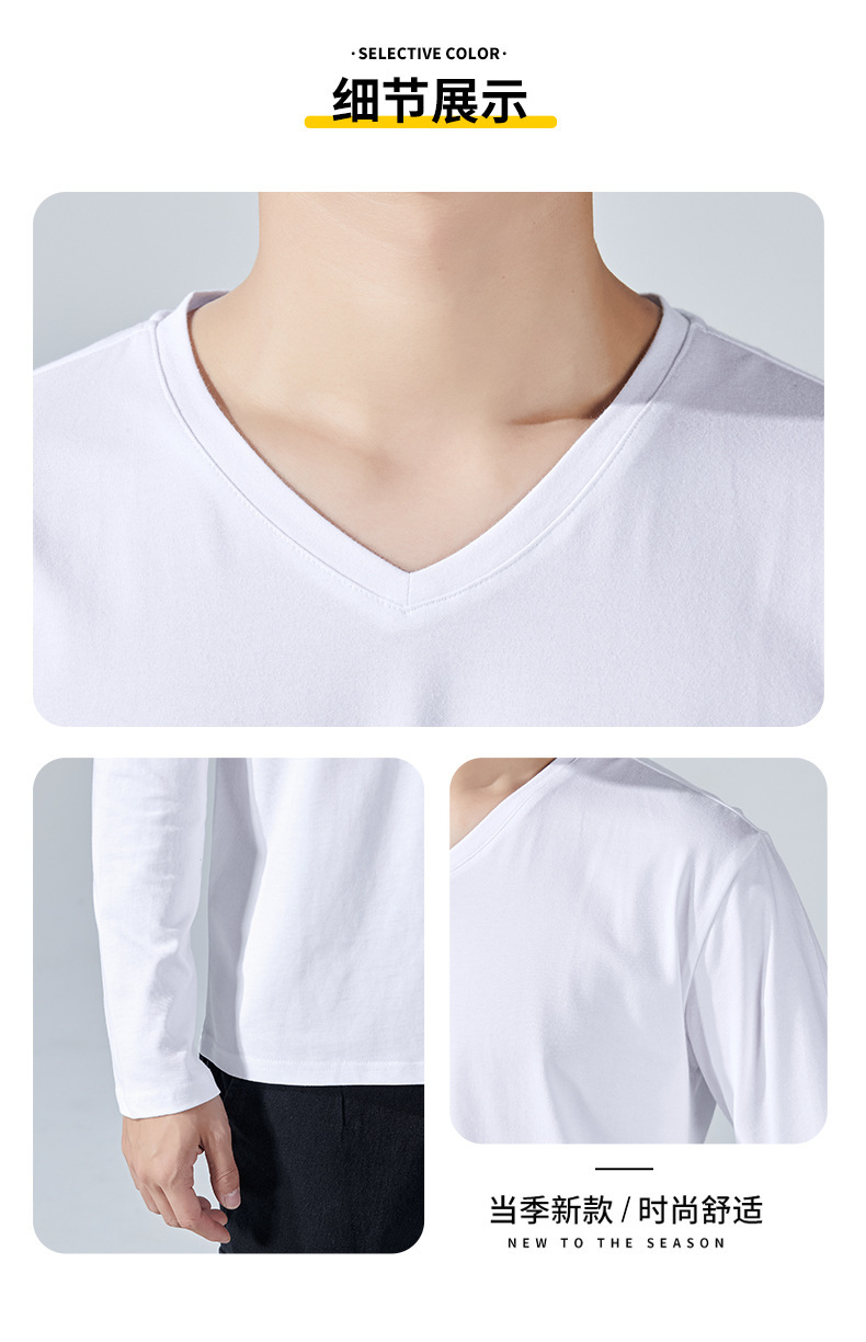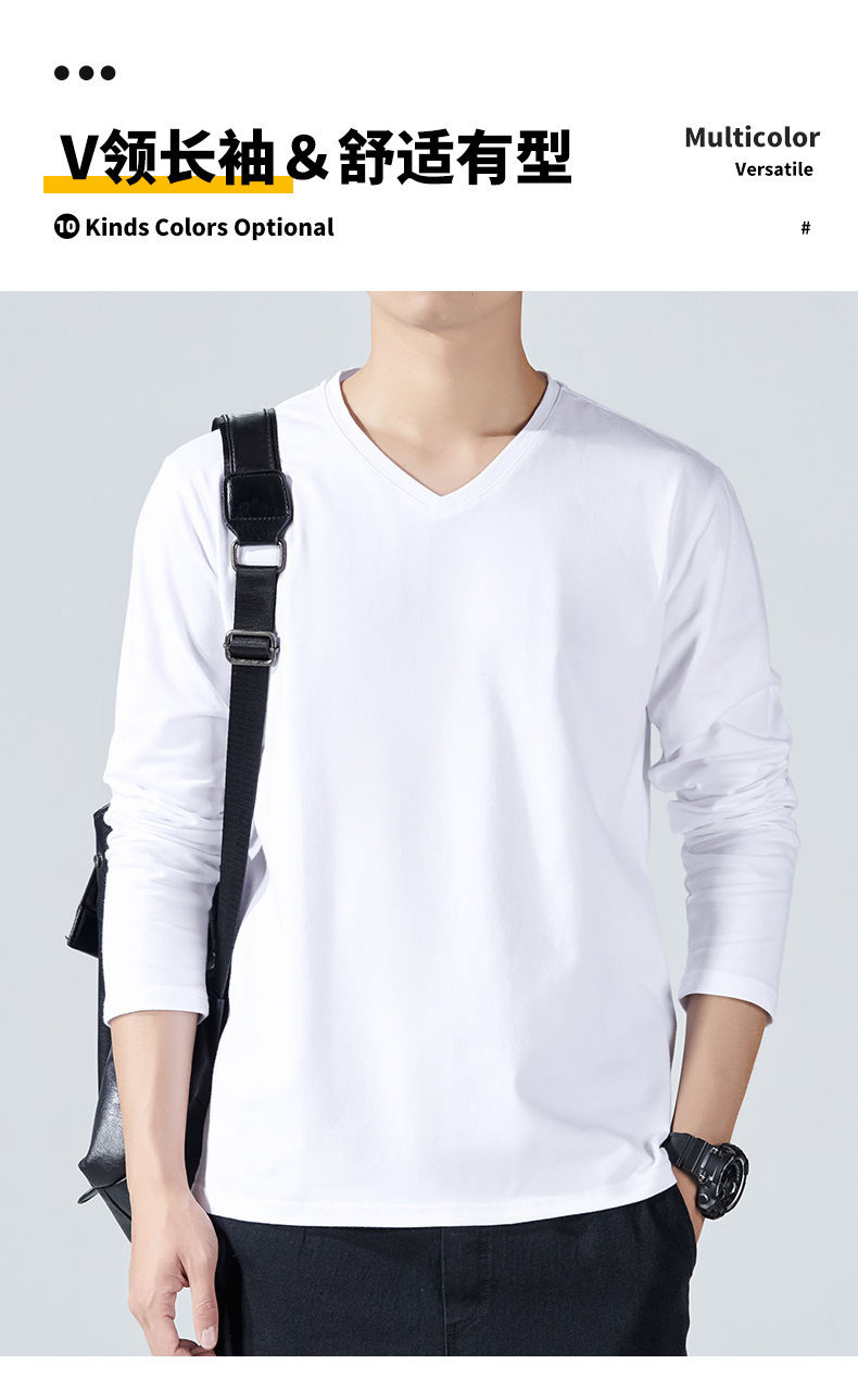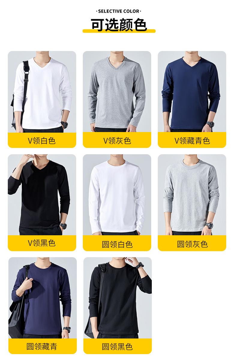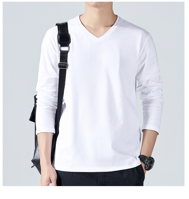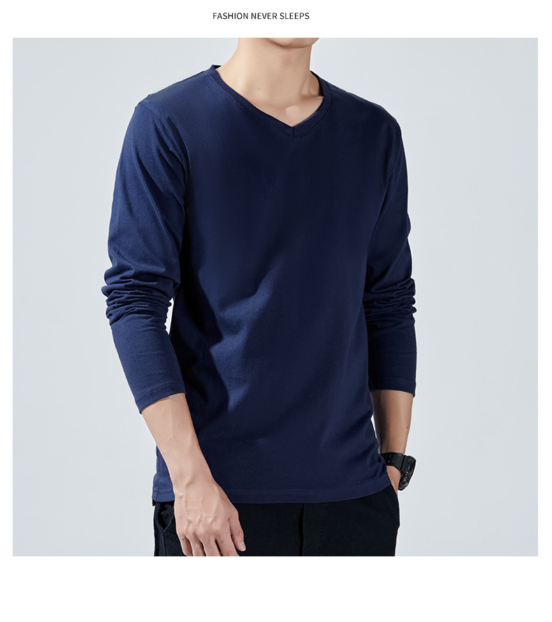 남자의 플러스 사이즈 가을 바닥 셔츠 단색 V 넥 긴 소매 얇은 느슨한 면 티셔츠 제조 업체 도매스토어 가기