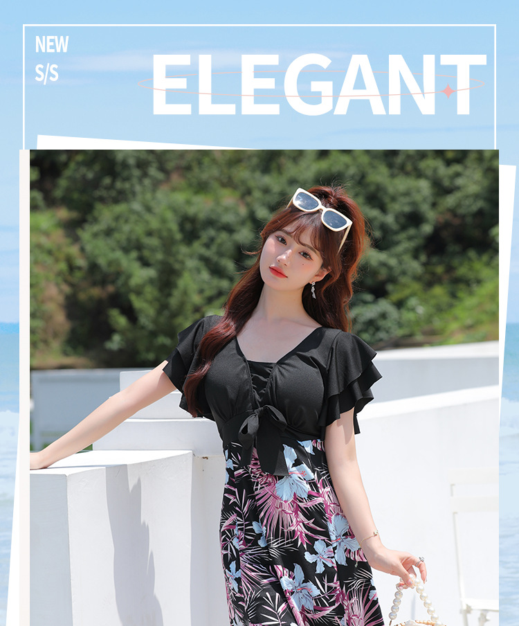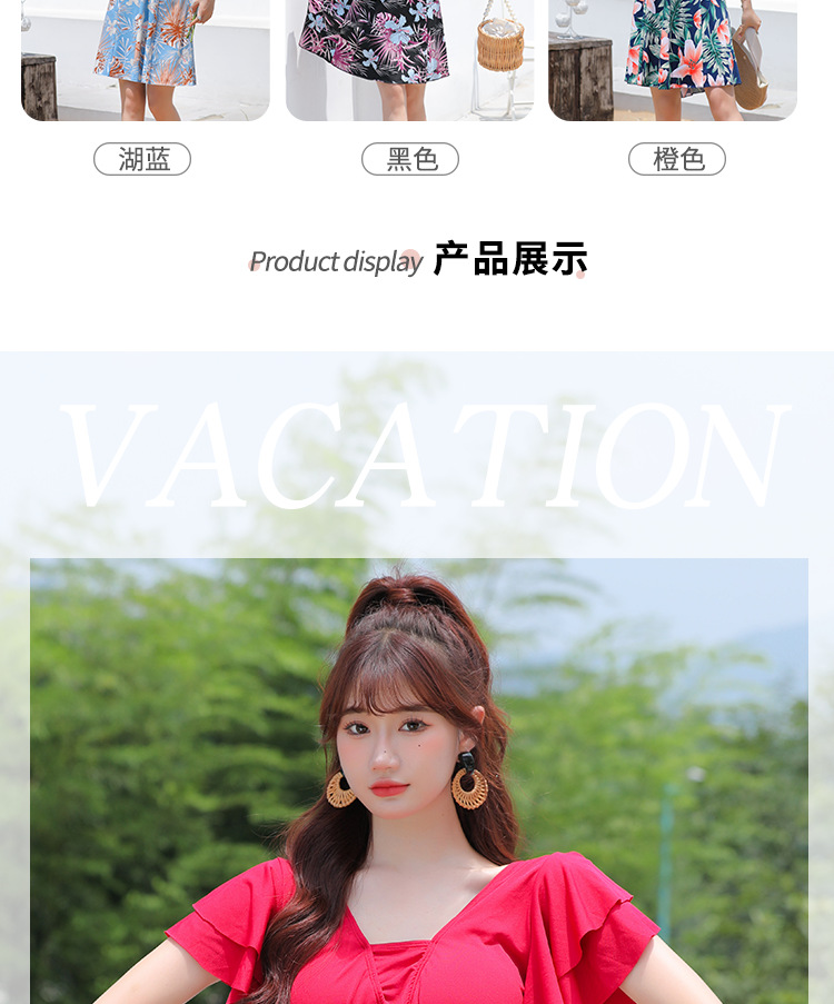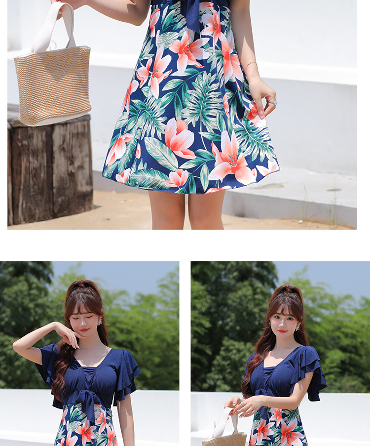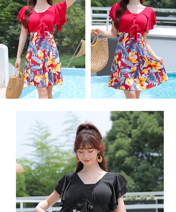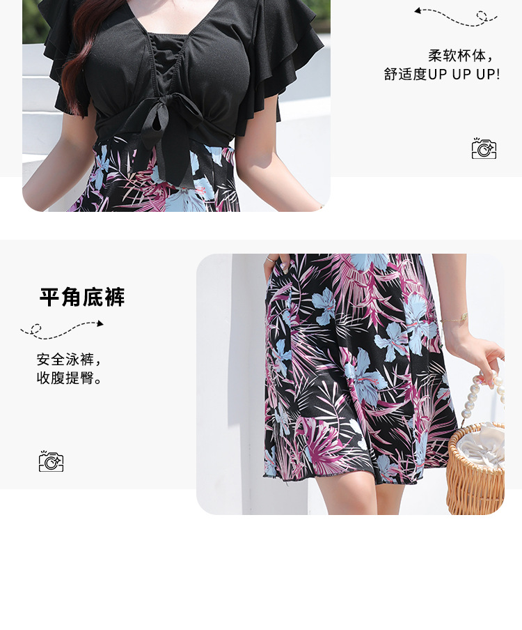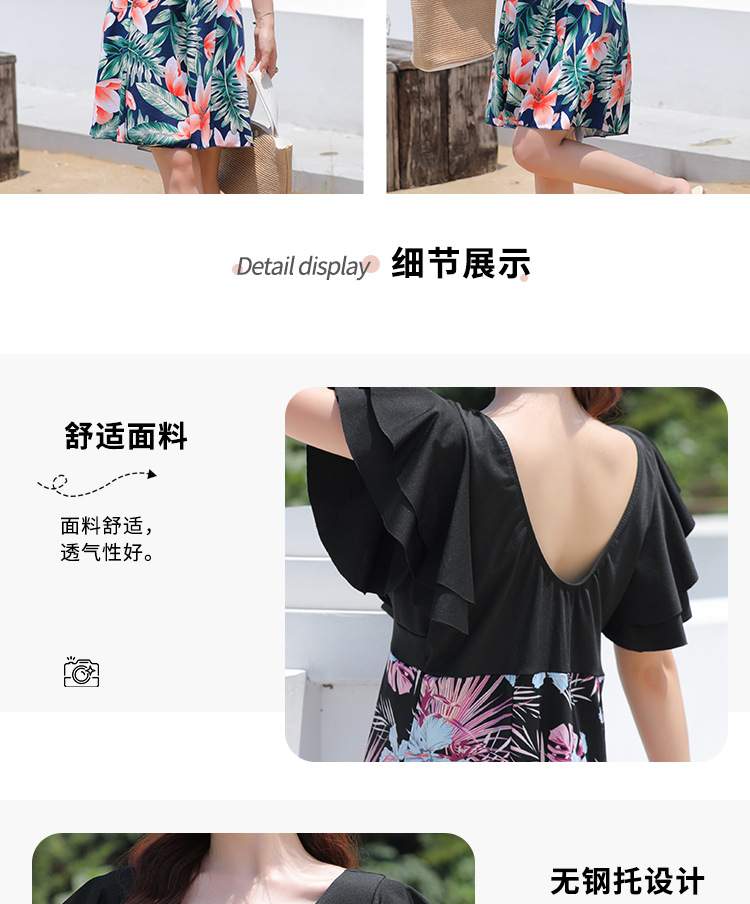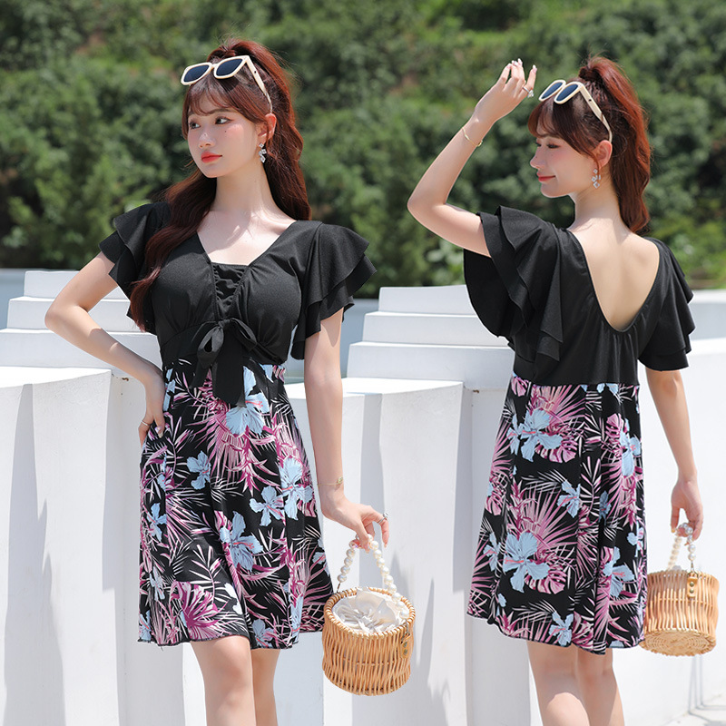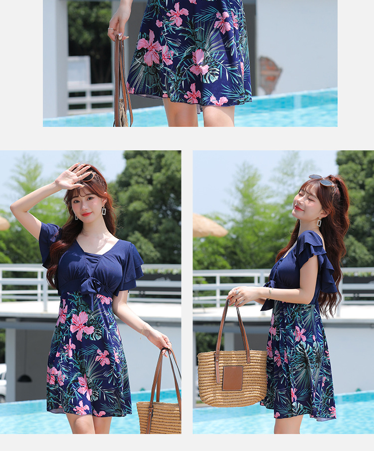 여성용 원피스 수영복 플러스 사이즈 플러스 사이즈 꽃무늬 스커트 배꼽 덮음 슬리밍 보수적 인 온천 해변 휴가 수영복