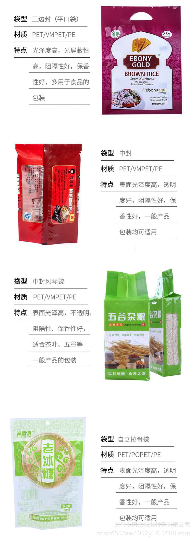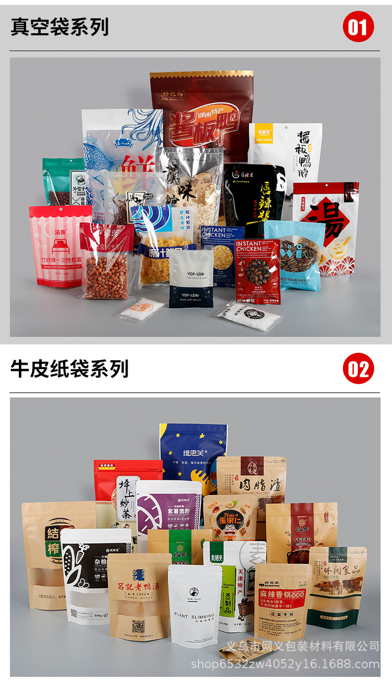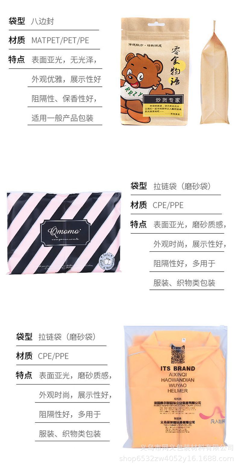 지퍼백, 크라프트지, 신선도 유지 진공백, 스낵 식품 복합백, 8면 밀봉백, 웨딩 캔디백, 로고 선물봉투