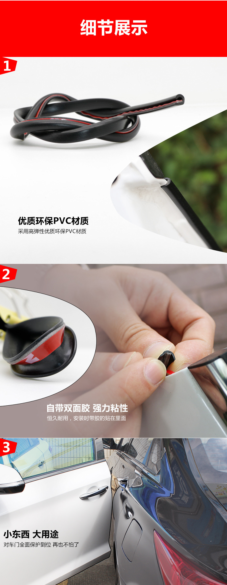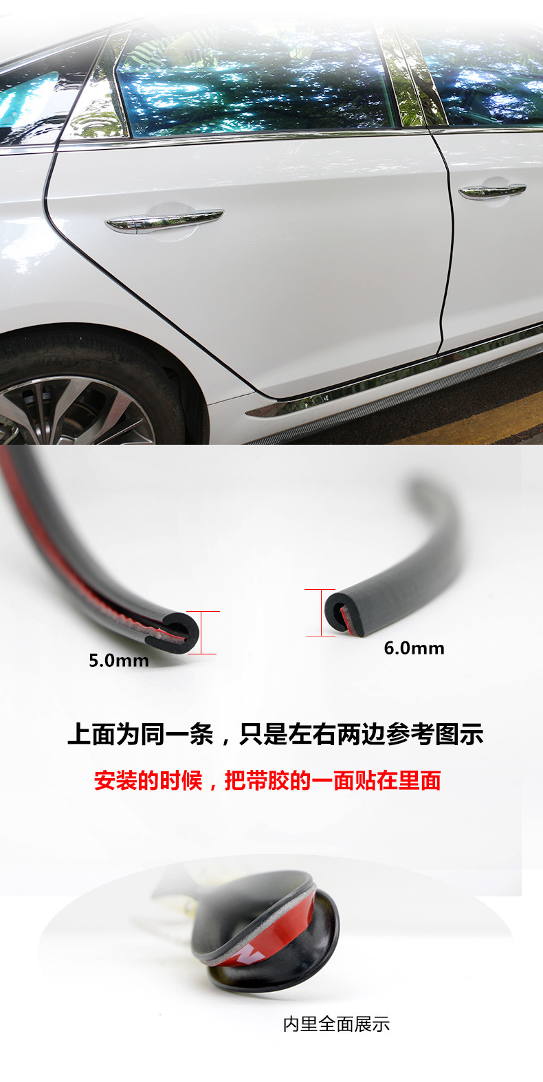 汽车防撞条车门边密封条隐形防撞胶条车门防刮条车身防擦保护贴条