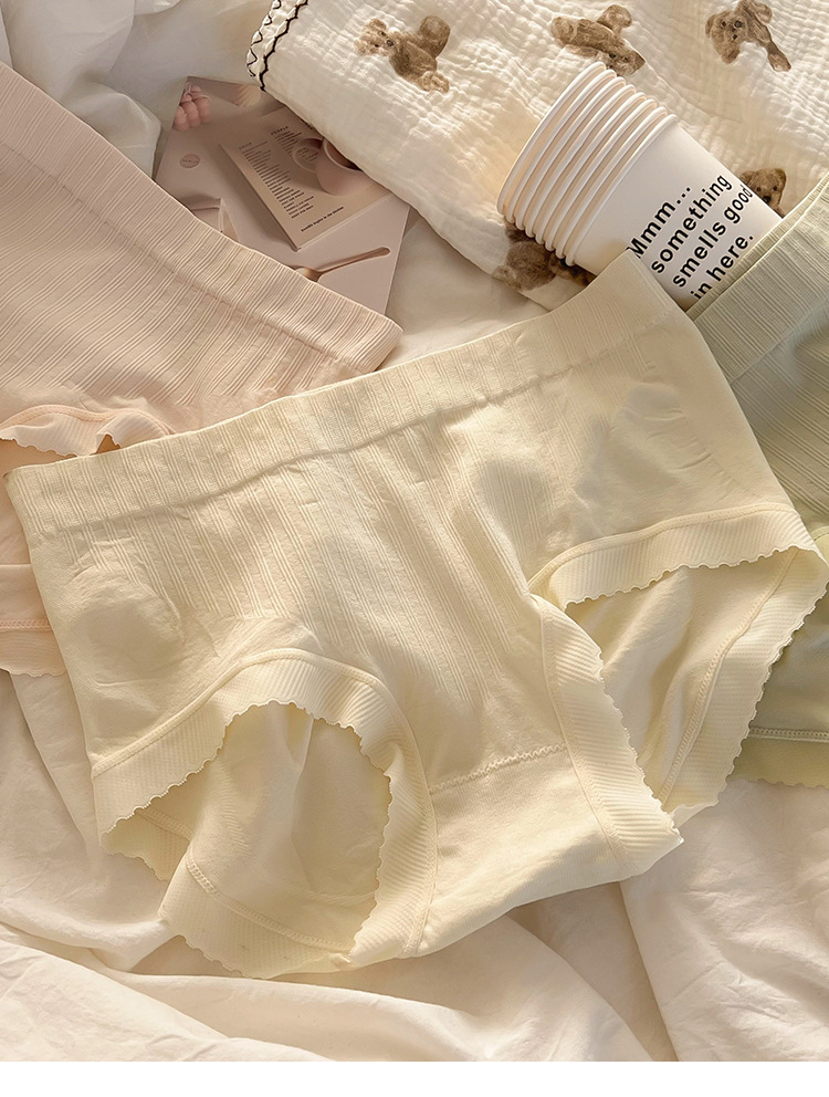 중간 허리 단색 여아 속옷 여성용 추적 통기성 항균 면 가랑이 달콤한 간단한 크림 귀여운 팬티