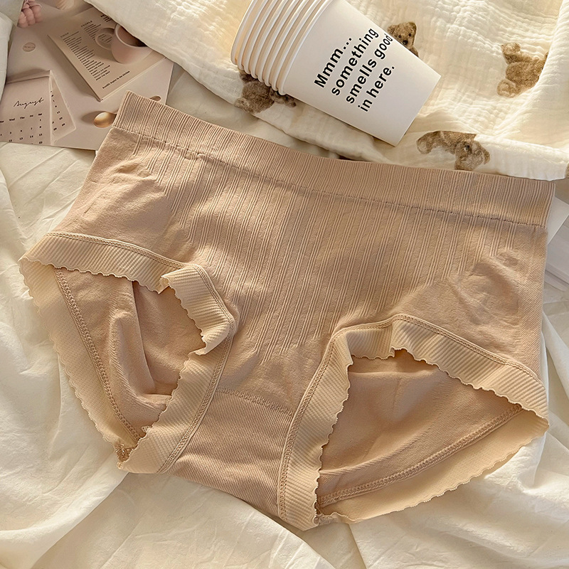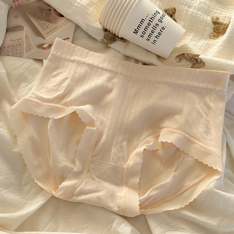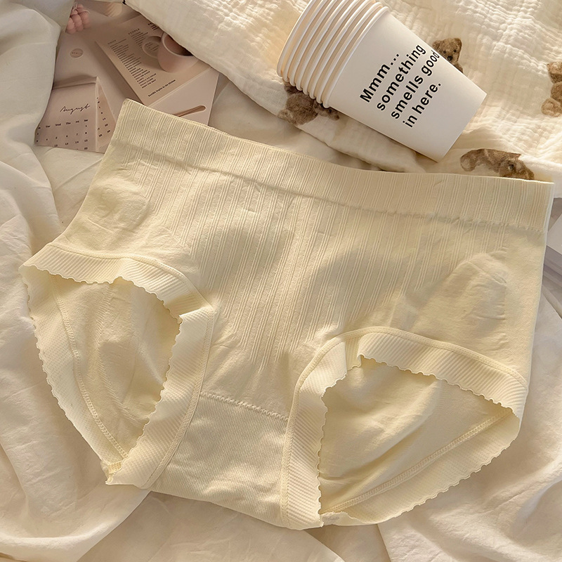 중간 허리 단색 여아 속옷 여성용 추적 통기성 항균 면 가랑이 달콤한 간단한 크림 귀여운 팬티스토어 가기