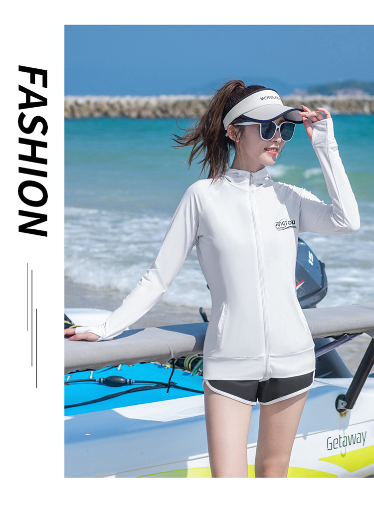한국 플러스 사이즈 여자의 다이빙 세트 원피스 긴 소매 지퍼 탑 태양 보호 스포츠 서핑 반바지 복서 수영복스토어 가기