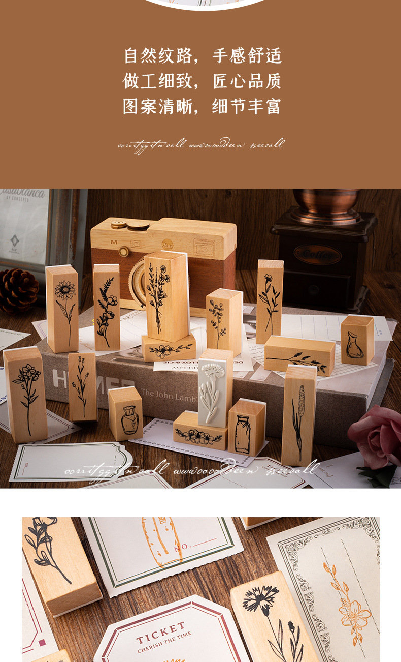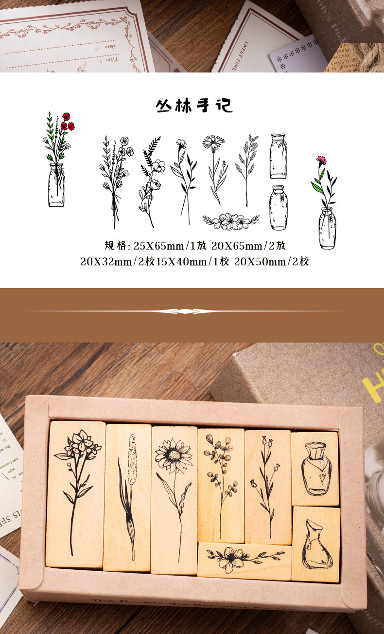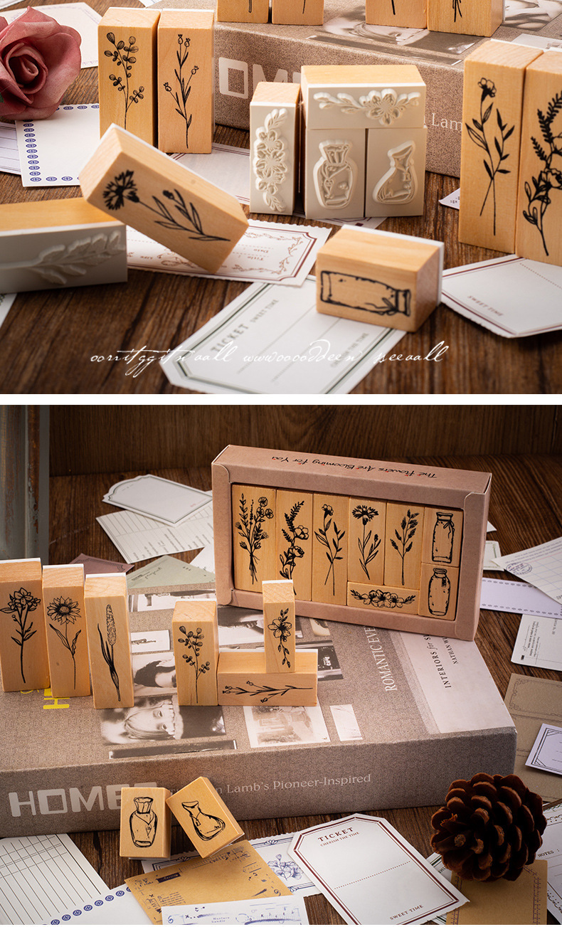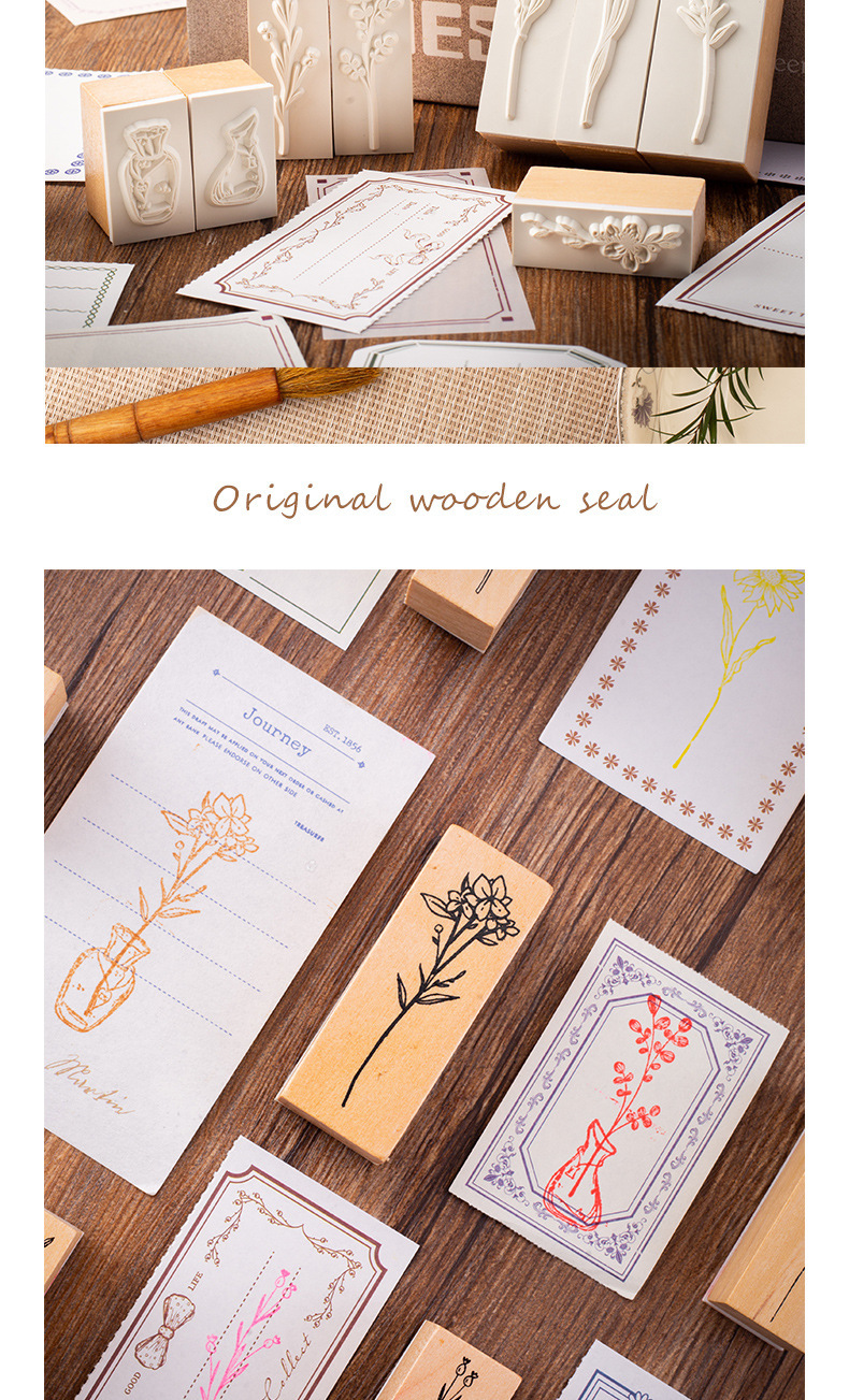 빈티지 로터스 조합 세트 인감 식물 꽃병 손 계정 DIY 사진 앨범 일기 장식 스탬프 2 옵션스토어 가기